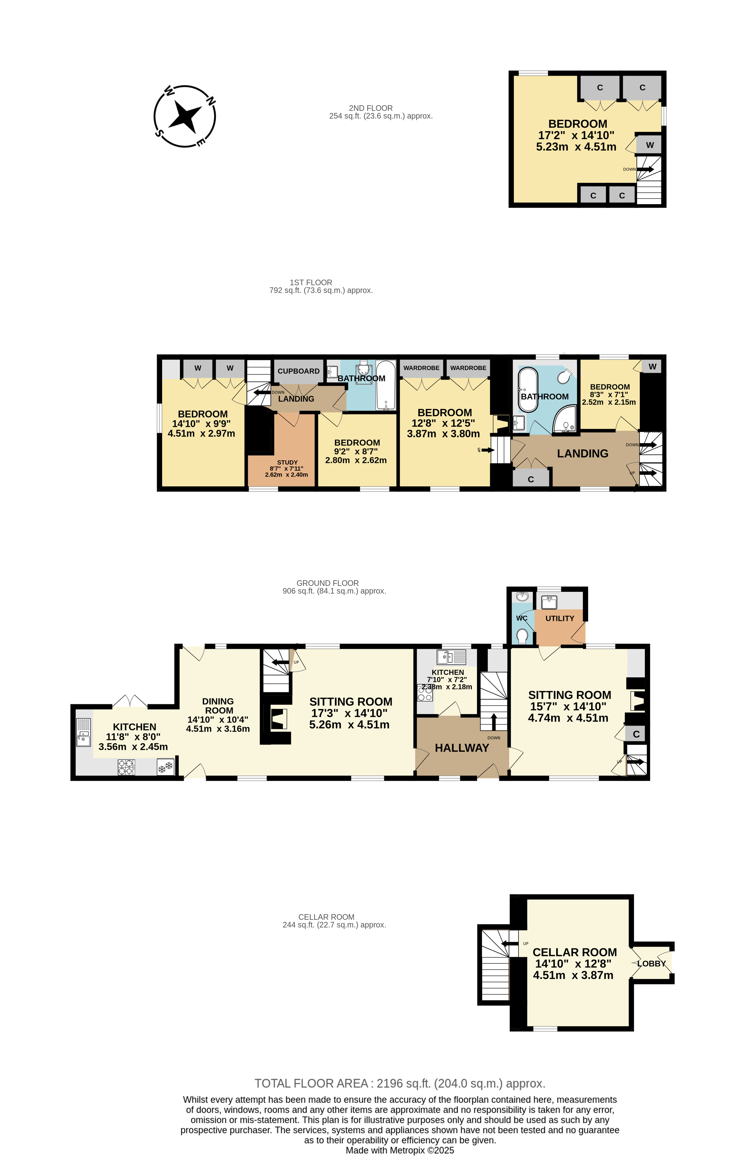The layout currently provides entrance hall that serves three reception rooms and support kitchen. Both sitting rooms offer dual aspect, open fireplaces each housing wood burning stoves. The kitchen is well appointed with a range of bespoke units incorporating domestic appliances with breakfast dining off. A jewel to this home is the dining room with its stone barrelled ceiling, a superb space to entertain. A cloakroom and utility complete the ground floor. The first floor is accessed via two stairwells that serve four bedrooms, two bathrooms and study. Stairs rise to the second floor where a delightful fifth bedroom is located.