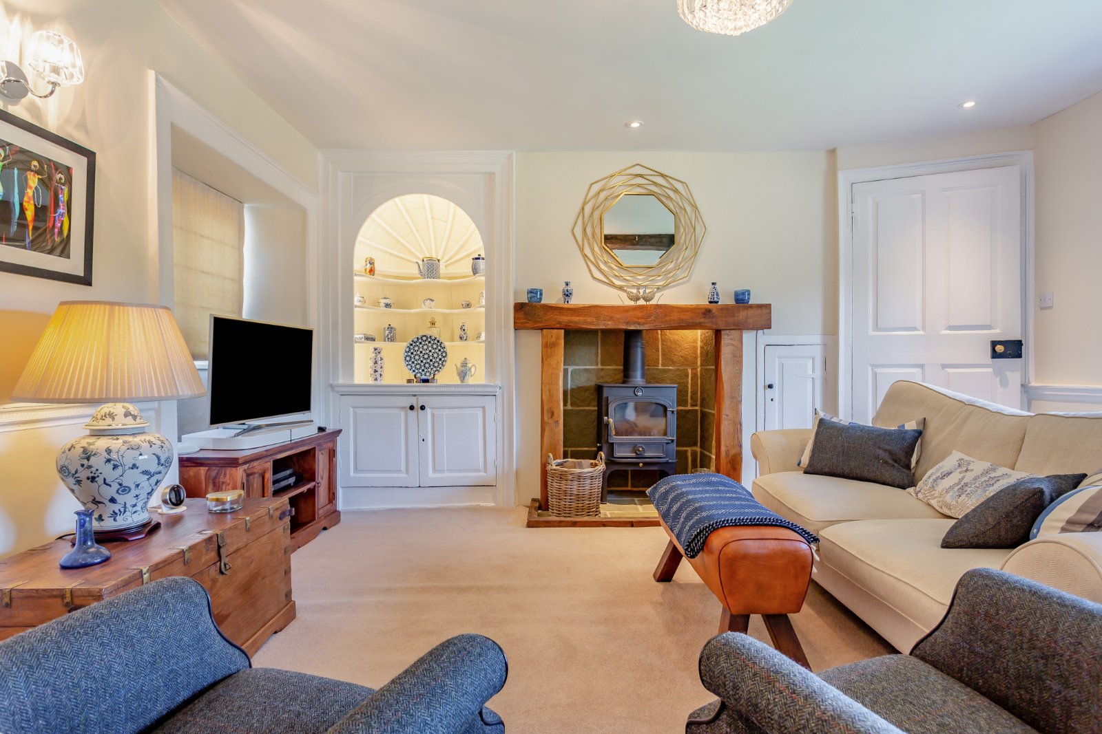 Grounds include a private alfresco terrace, well-maintained lawns bound by stone walling and well stocked herbaceous borders. Parking for four cars.