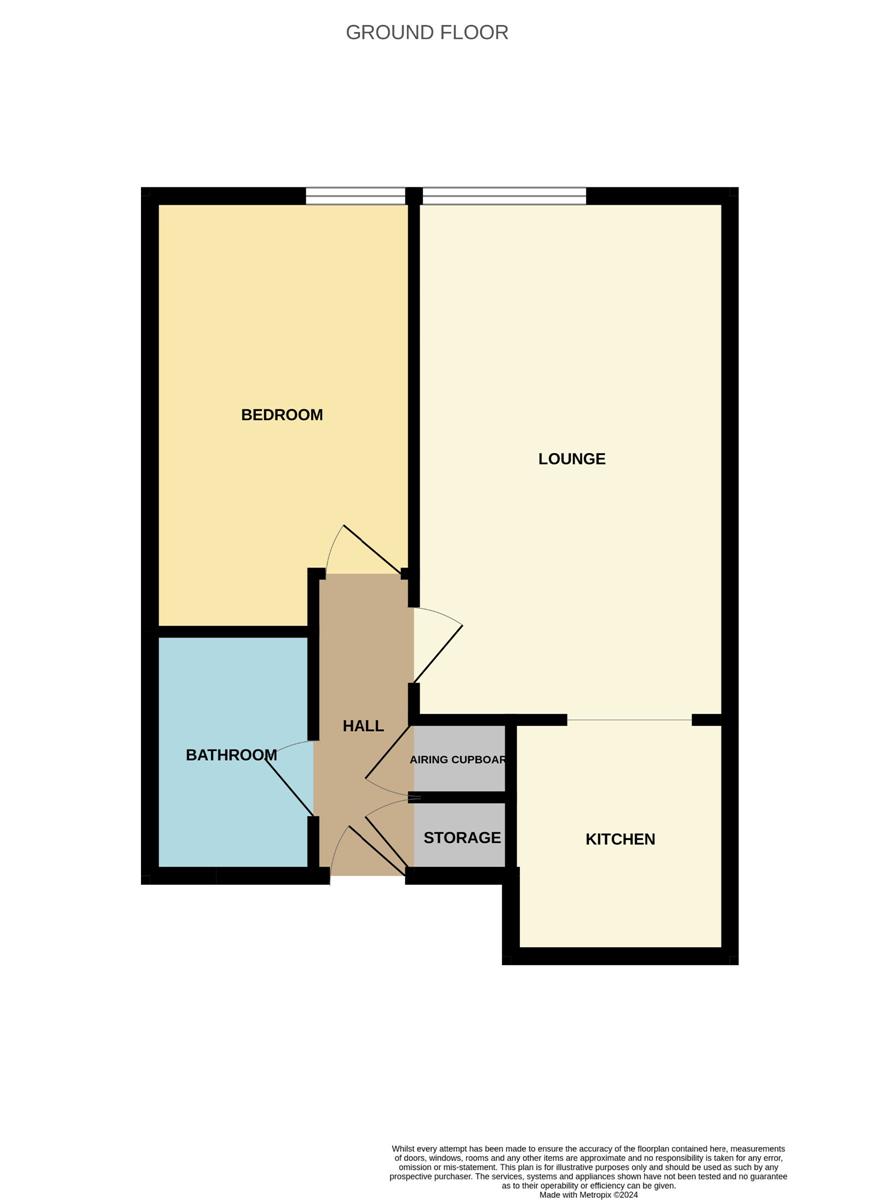 Storage heater, airing cupboard, built in storage cupboard and access to bathroom, bedroom and