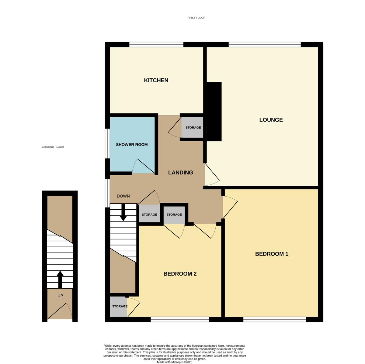 Two built in storage cupboards, radiator, double glazed front window