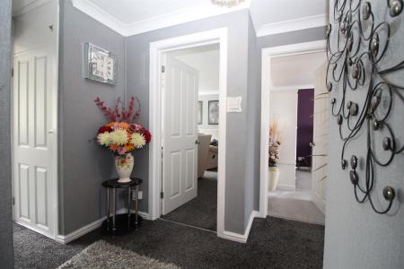 Double glazed front entrance door to entrance lobby, stair flight to first floor