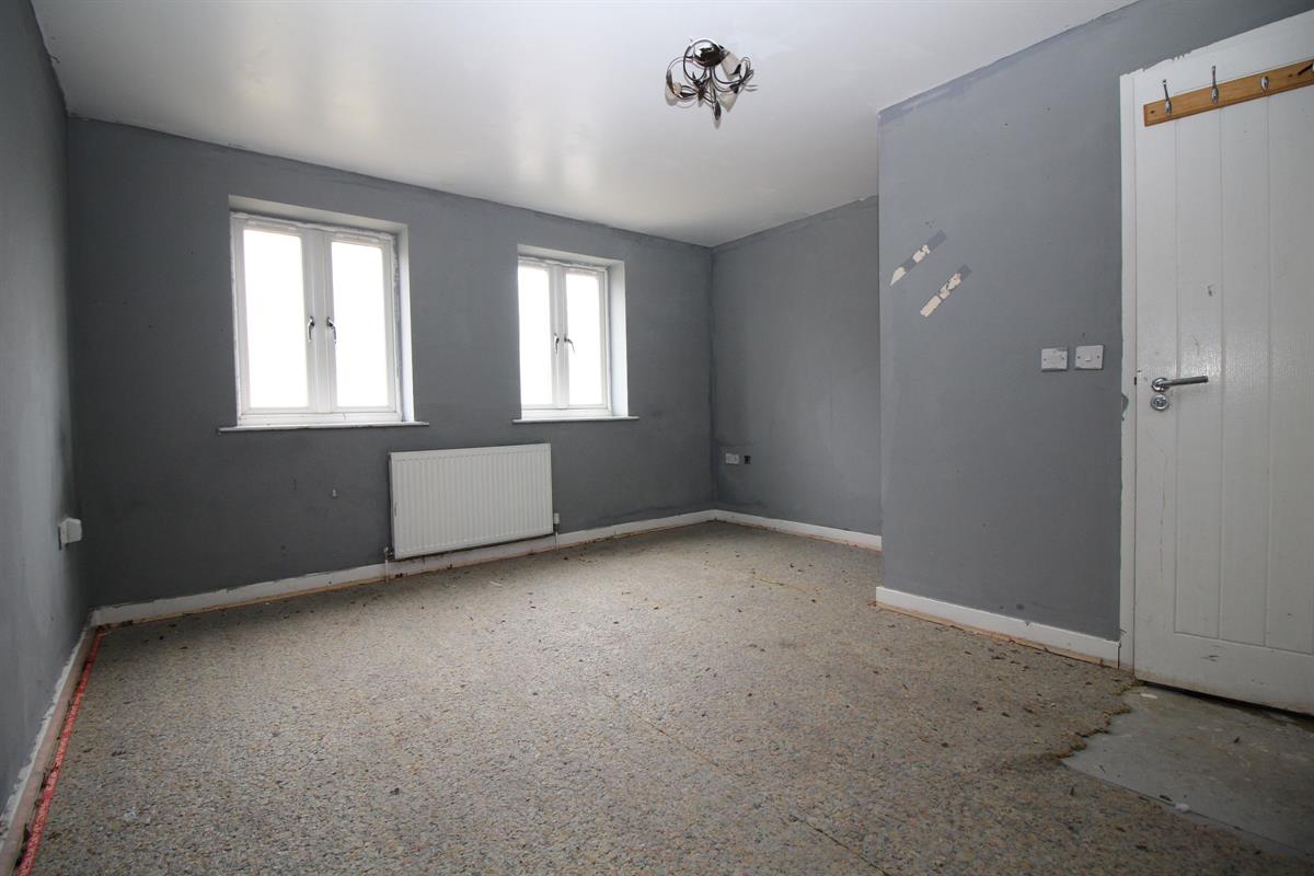 L-shaped, radiator, two double glazed rear windows, door to