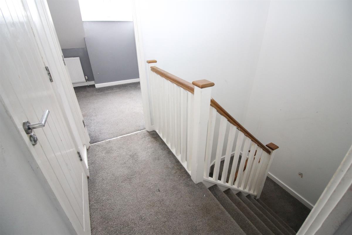Stair flight to first floor, radiator, doors to
