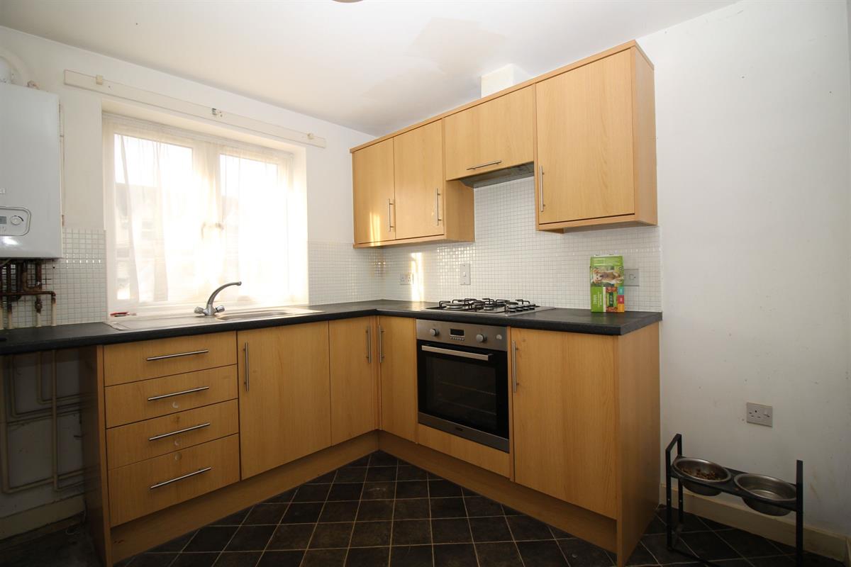 Double glazed window to front, fitted kitchen comprising of single drainer sink unit set in roll edge work surfaces with cupboards under, further roll edge work surfaces and range of matching base and eye level units, wall mounted boiler.