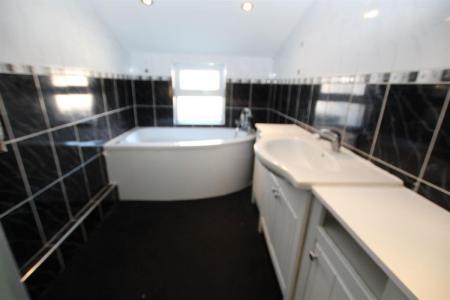 Comprising of jacuzzi corner panel enclosed bath, vanity wash hand basin with cupboard under, corner shower cubical, fully tiled walls, heated towel rail, airing cupboard.