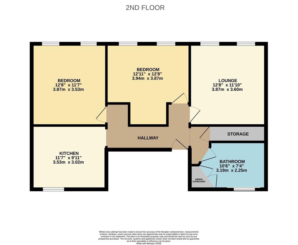 Bedroom 2 w: 3.73m x l: 3.89m (w: 12' 3" x l: 12' 9")
