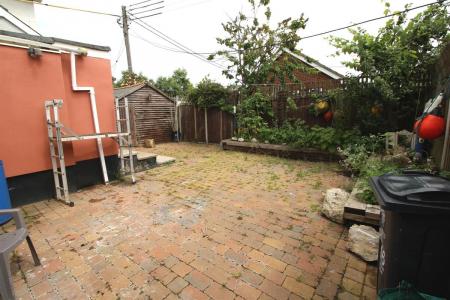 As previously mentioned, the property sits on an enclosed double plot which is mainly block paved with raised flower and shrub beds to the rear and wood storage shed.