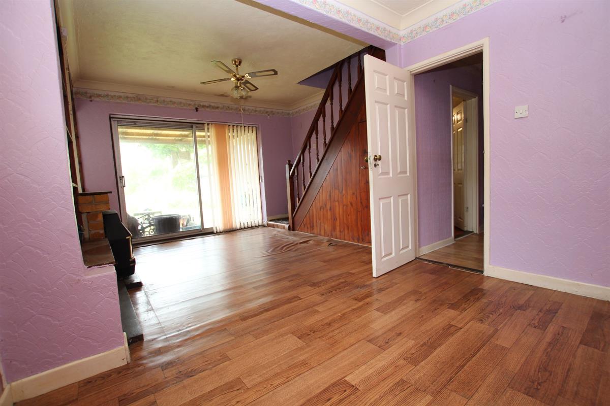 Two double glazed windows to side, patio doors to rear garden, radiator, stairs to first floor with storage cupboard under.