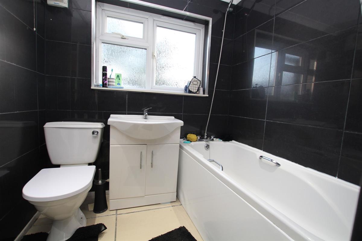 Three piece bathroom suite consisting of panel enclosed bath, pedestal wash hand basin and low level W.C, fully tiled walls, tiled floor, double glazed window to rear, large cupboard housing gas central heating boiler, single radiator.