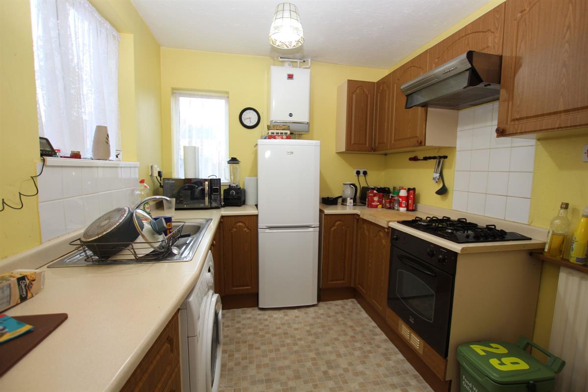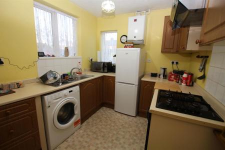 Double glazed window to rear and further double glazed window to side. Fitted comprising of single drainer sink unit set in roll edge work surface with cupboard under, further roll edge work surfaces with range of matching base and eye level units, single radiator, under stairs storage cupboard, wall mounted boiler, space for washing machine.