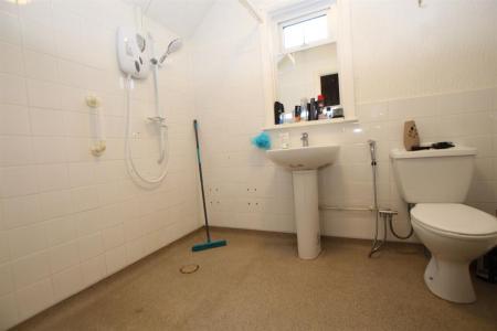 Double glazed window to rear, tiling to walls, independent wall mounted shower, low level w.c., pedestal wash hand basin