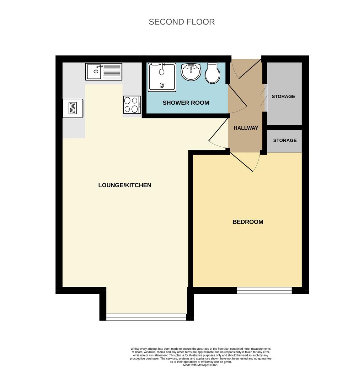 Storage recess, double glazed window to rear aspect.