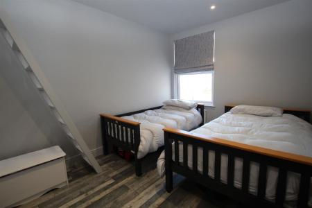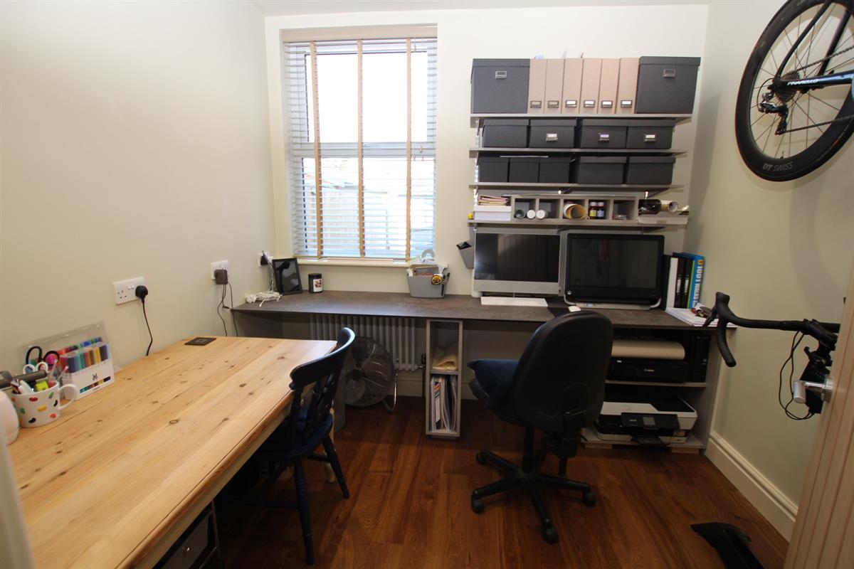 Two double glazed windows to front, two radiators, skimmed ceiling with recessed spot lighting.