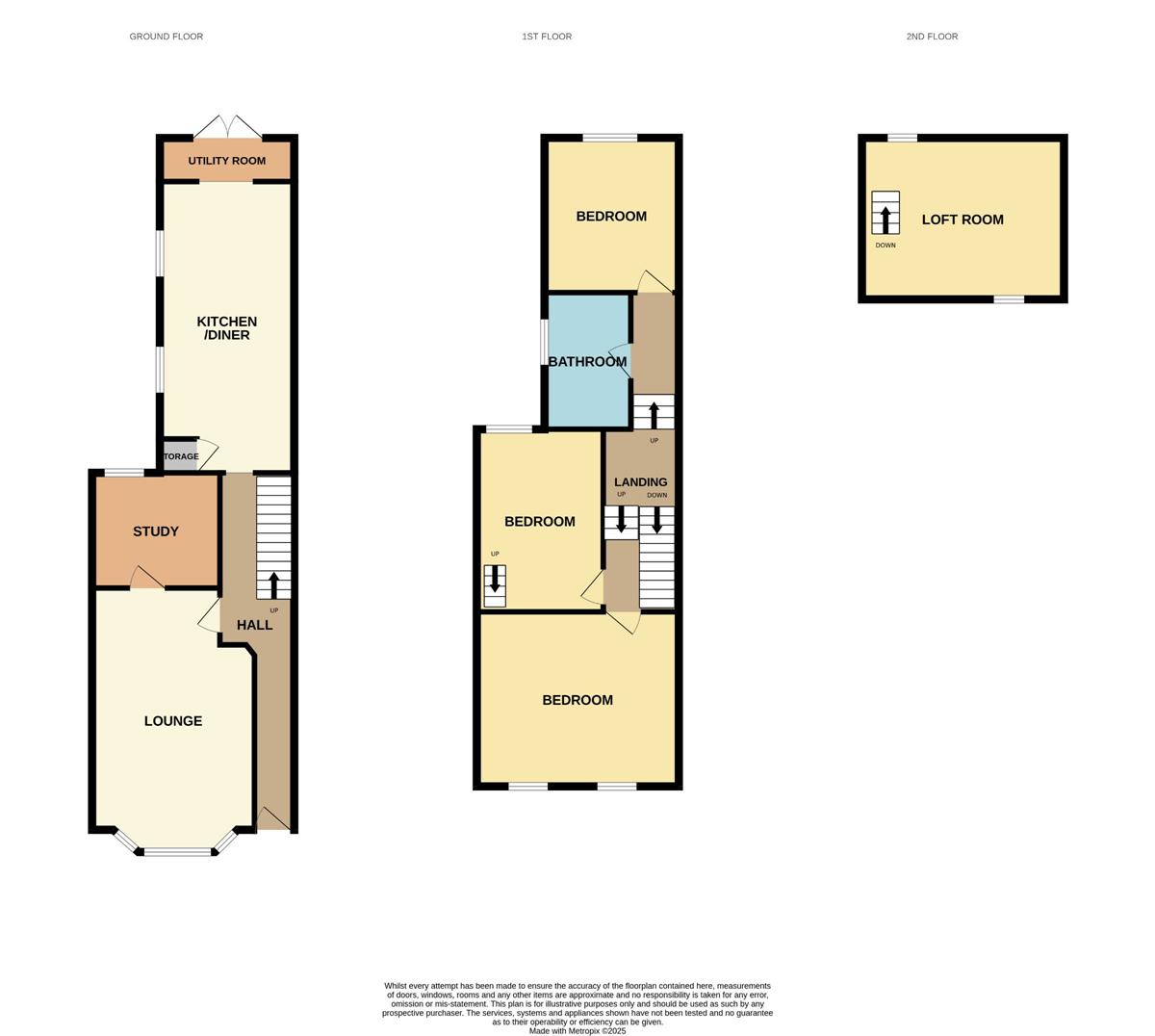 Double glazed window to rear, radiator, ladder style stairway through loft hatch accessing loft room