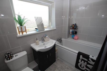 Double glazed window to rear, panel enclosed bath, vanity wash hand basin, panel enclosed bath, tiling to walls
