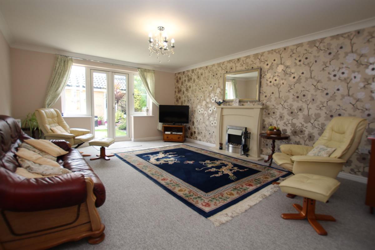 Electric fire in feature surround, two double radiators, coved and skimmed ceiling, double glazed French doors with side lights to rear garden.