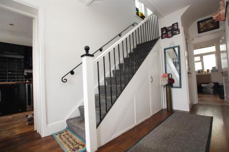 Stairs to first floor, cupboard under, skimmed ceiling.