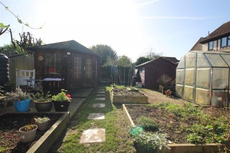 Mainly laid to lawn with paved patio, multiple outbuildings, one of which has hot and cold running water as well as electric connected. The garden also has a summer house and greenhouse, along with many mature shrubs within the planted borders and a potential vegetable plot area.