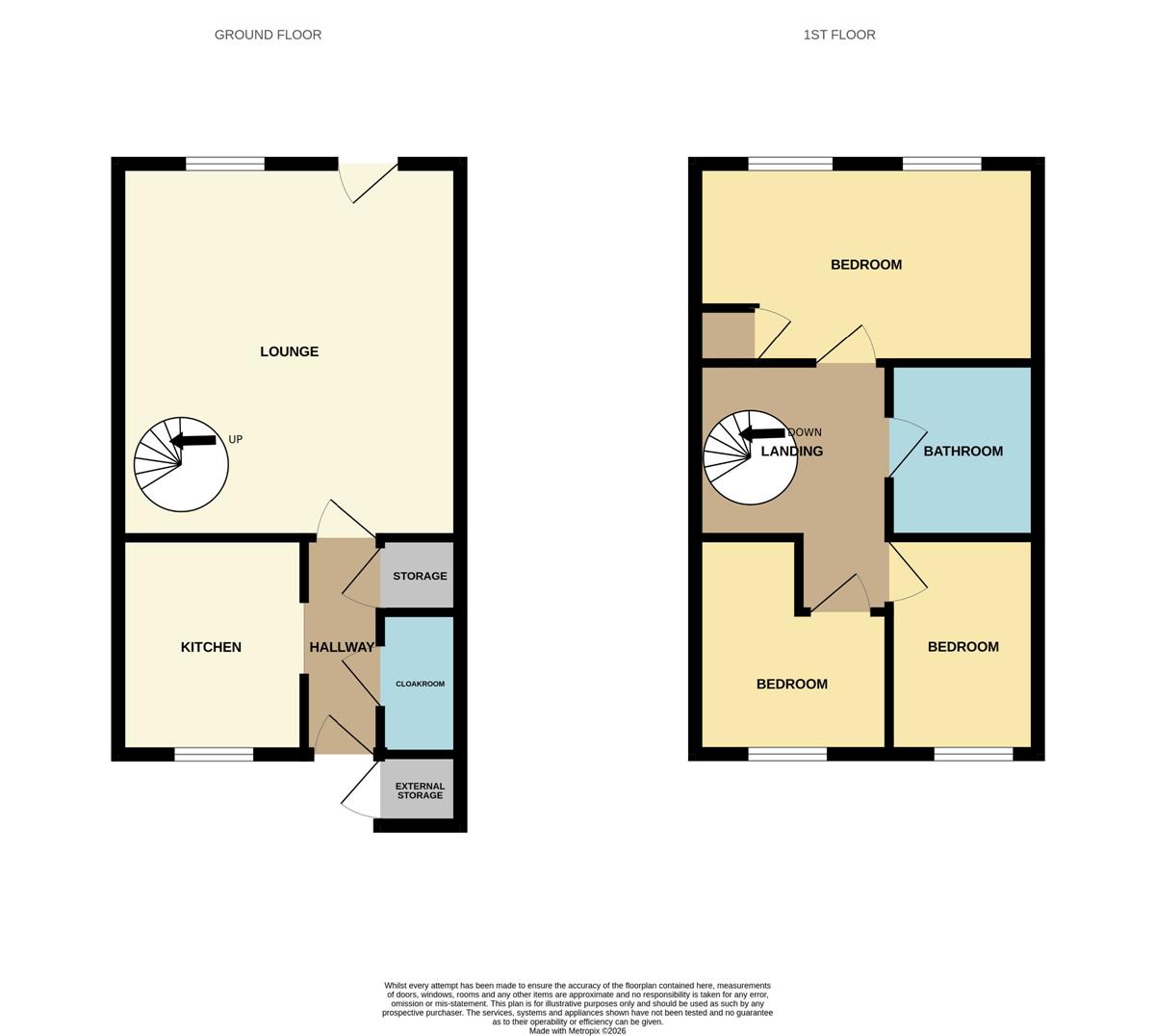 2 double glazed windows to rear, storage cupboard housing water tank, storage heater.