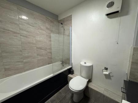 Modern three piece suite comprising of panel enclosed bath with mixer taps and shower attachment and shower screen, low level w.c, vanity wash hand basin with storage drawers and cupboards below, loft access, vinyl flooring, splashback tiles.
