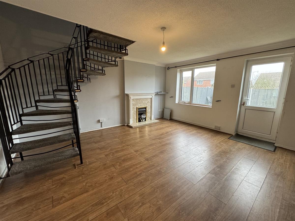 Double glazed window to rear, door to rear garden, wood effect laminate flooring, feature fireplace in tiled surround, open staircase to first floor landing.