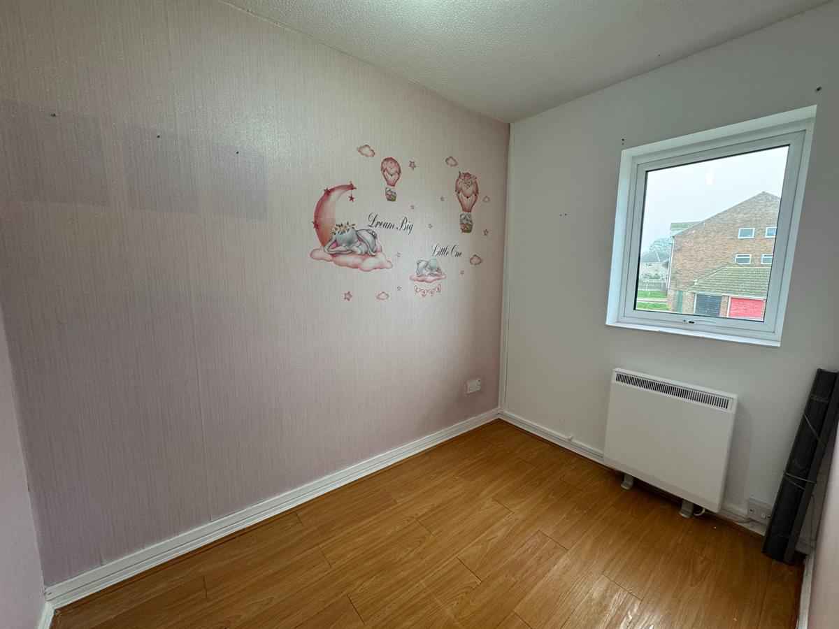 Double glazed window to front, wood effect laminate flooring, storage heater.
