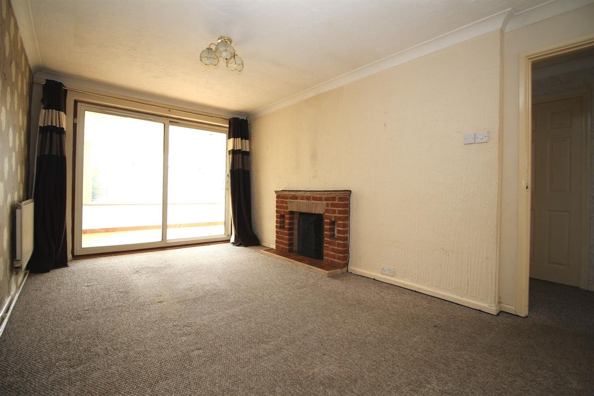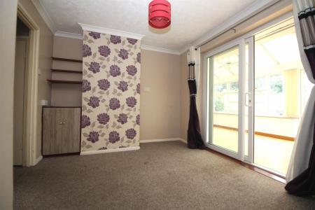 Red brick style feature fireplace with tiled hearth, two radiators, double glazed fixed and sliding patio doors leading to conservatory.