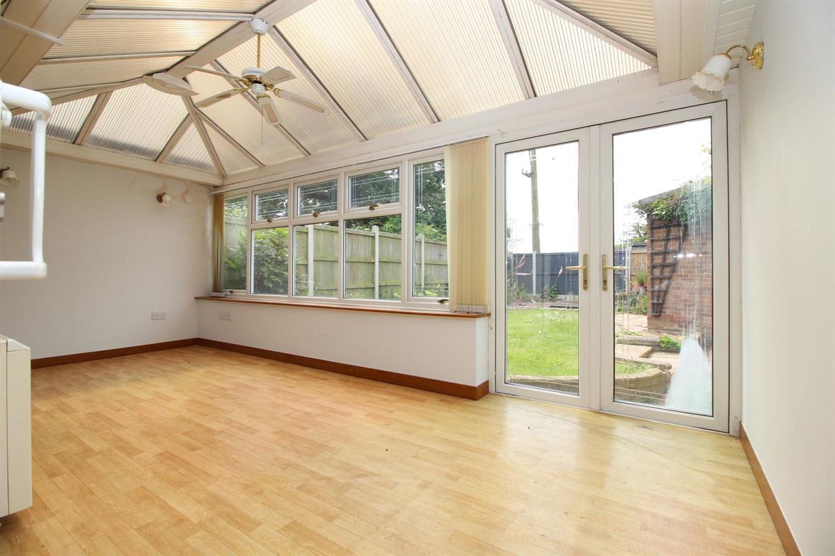 Open doorway to kitchen, double glazed fixed and sliding patio doors leading to conservatory, access to hallway, radiator