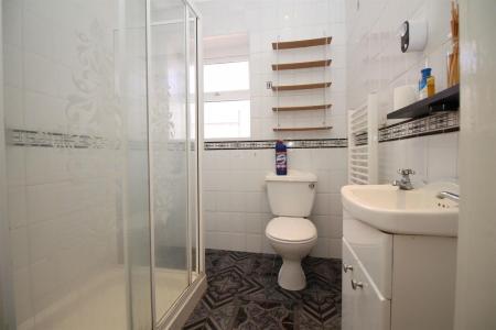 Comprising of double shower cubicle, low level W.C and vanity wash hand basin, heated towel rail, fully tiled walls, coved and skimmed ceiling with recessed spot lighting, tiled floor, double glazed window to side.