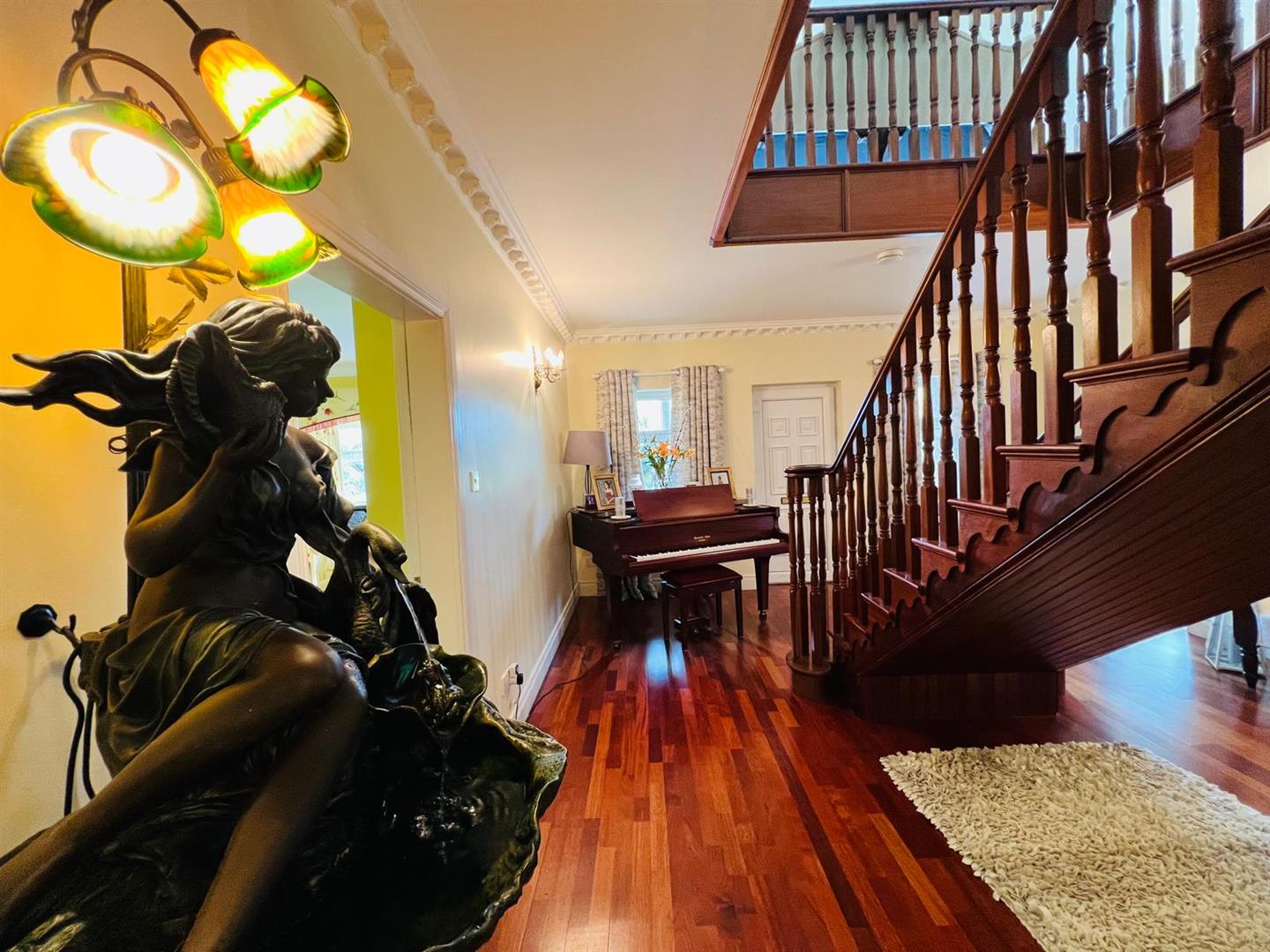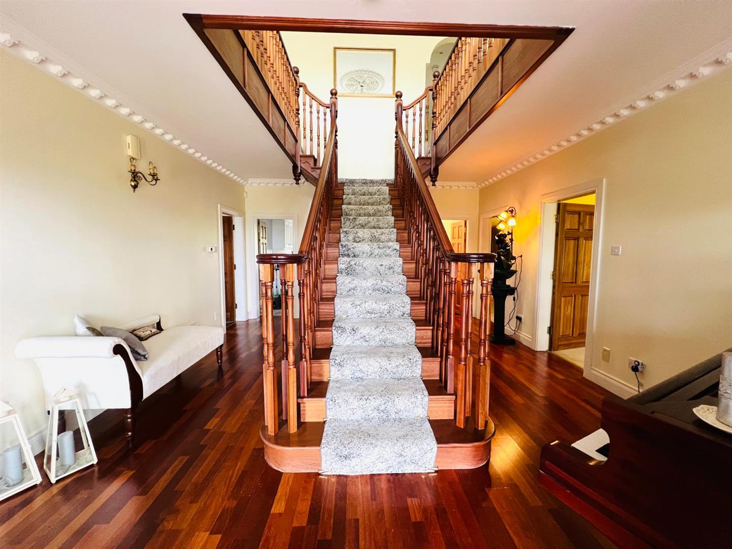 Having ceiling cornicing, wall light points, central mahogany staircase, walk in cloaks cupboard, wooden floor.