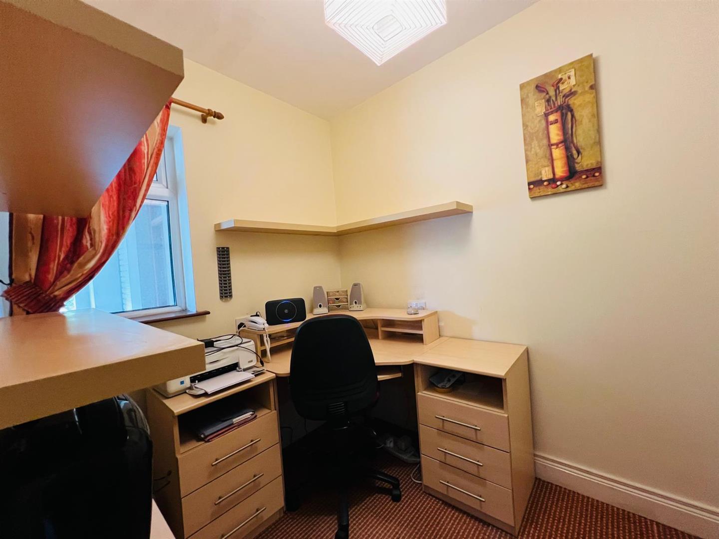5.66m x 5.38m into bay (18'7" x 17'8" into bay) - Having ceiling cornicing and centre rose.
