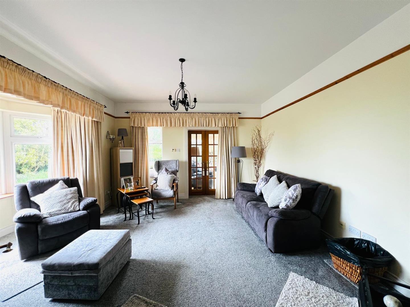 4.50m x 4.42m into bay (14'9" x 14'6" into bay) - Having attractive fireplace, double doors to Sunroom.