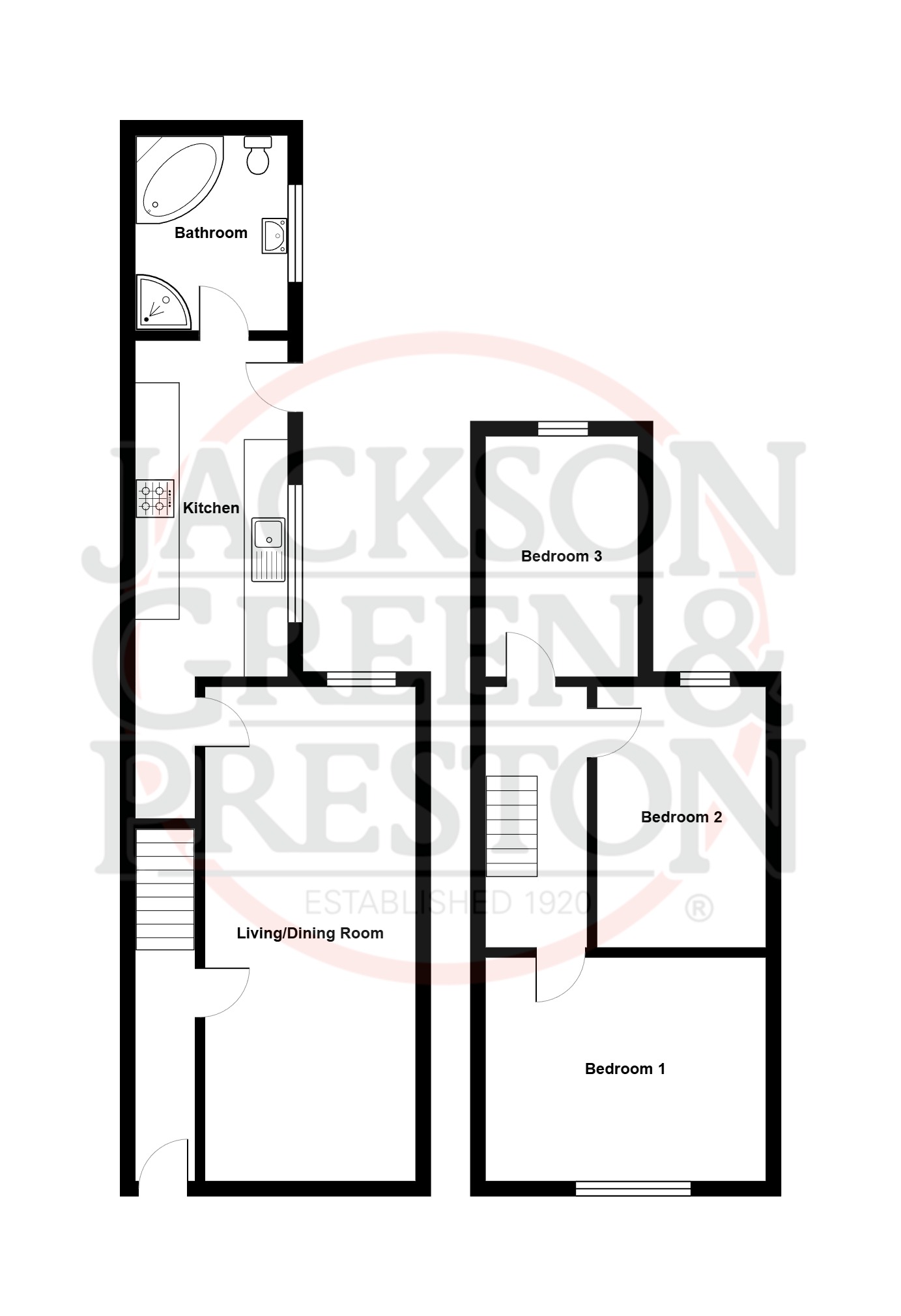 - Three first-floor bedrooms