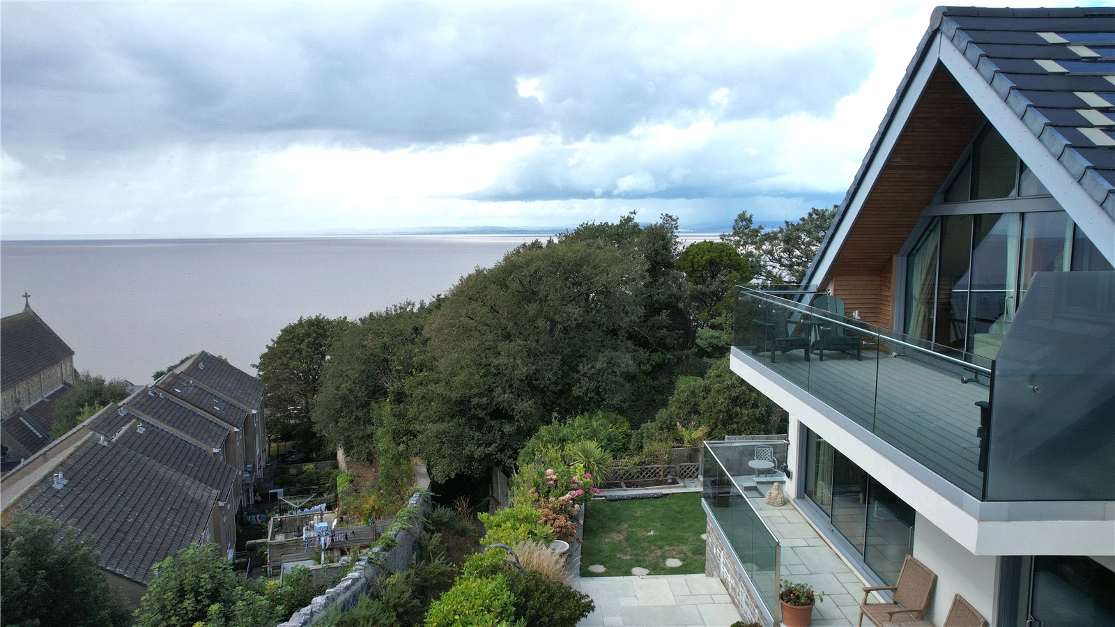 - Landscaped private garden and terrace with a South-West aspect, enjoying panoramic views across the seafront and skyline