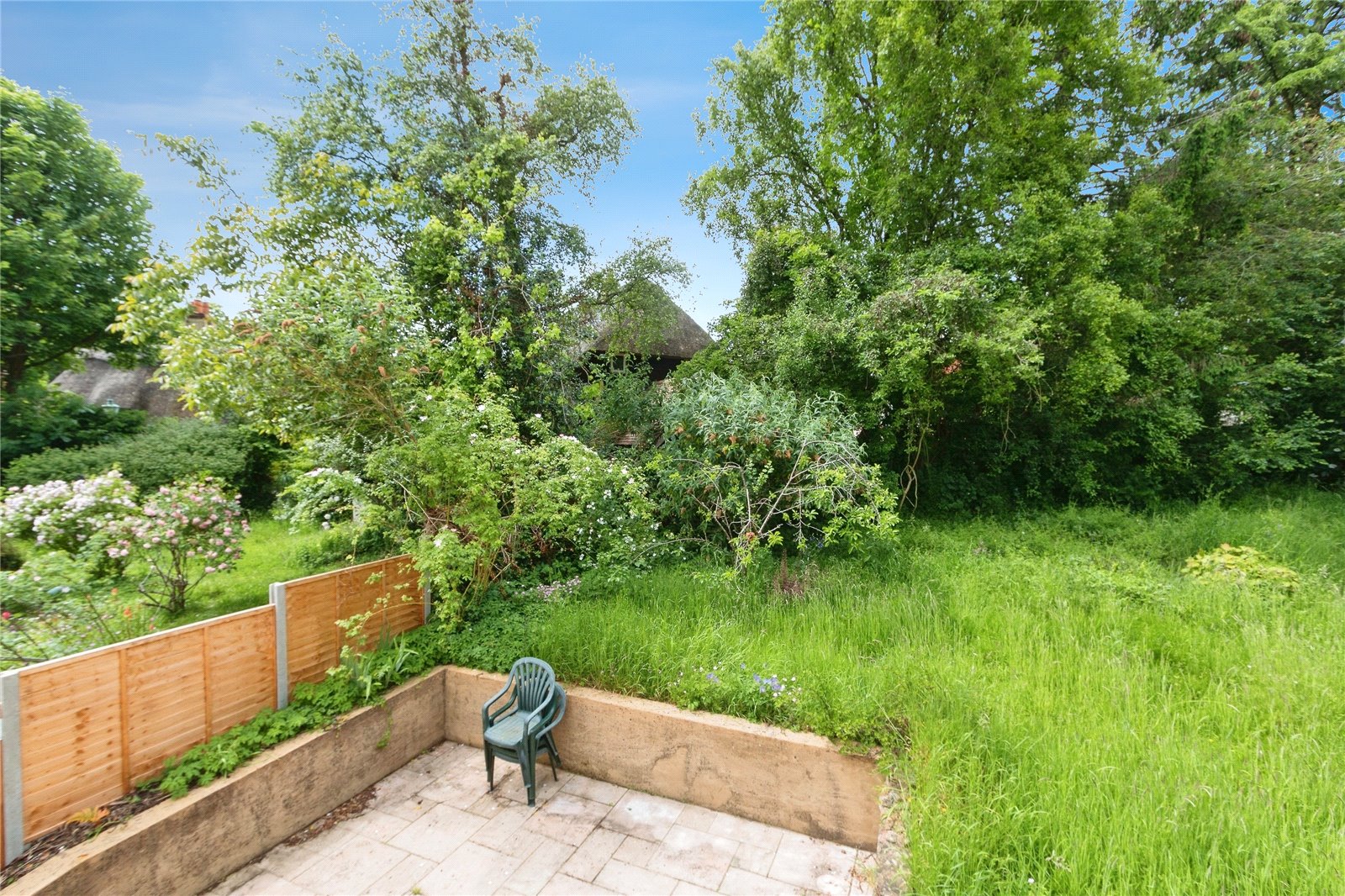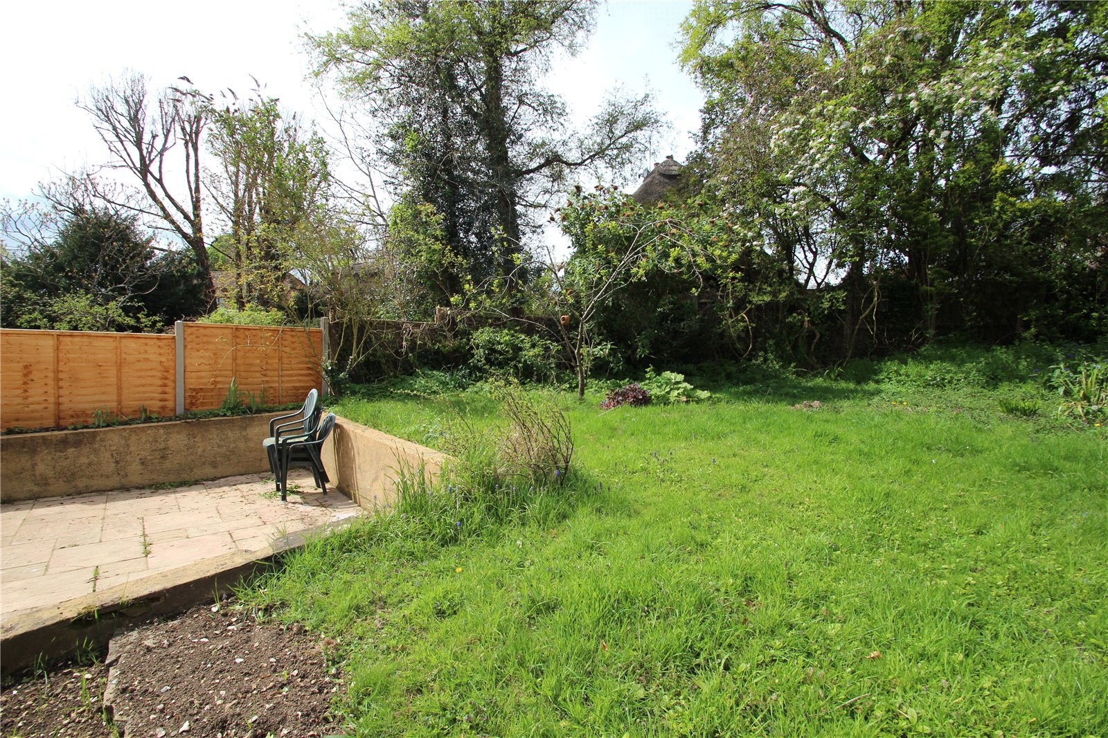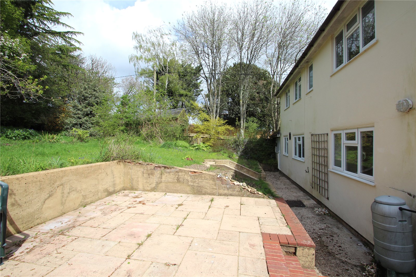 To the rear is a large garden laid to lawn with surrounding mature shrubs and trees plus terraced patio area. To the front is driving way parking for up to four vehicles. The property is nicely set back from the road and well screened by hedging.