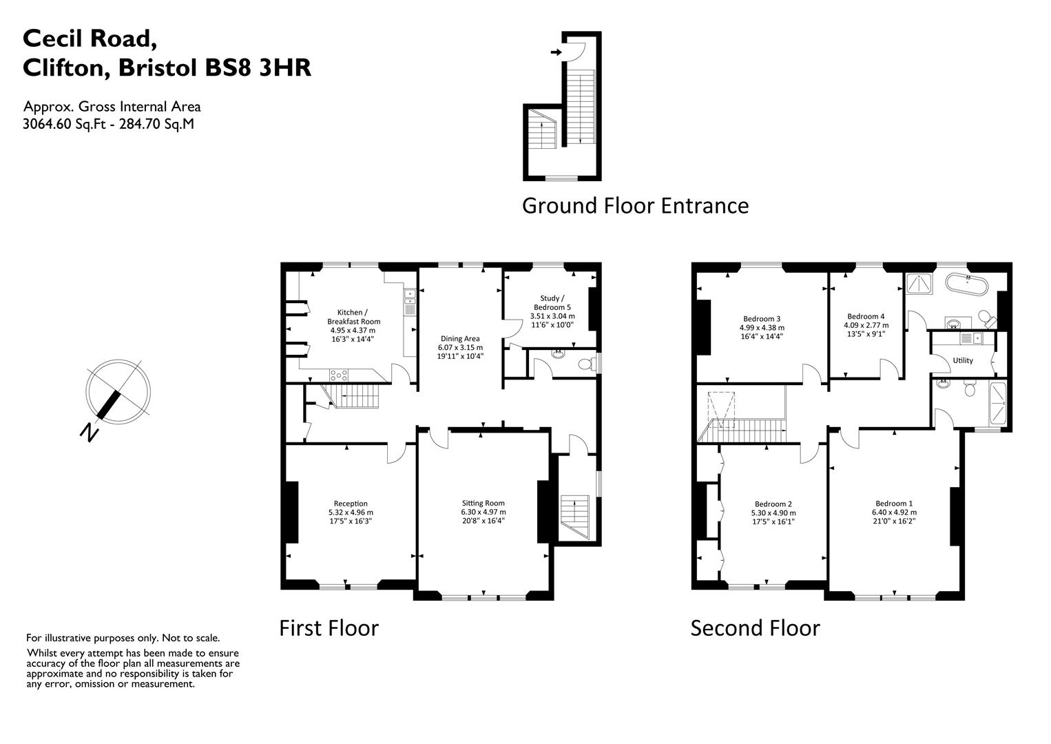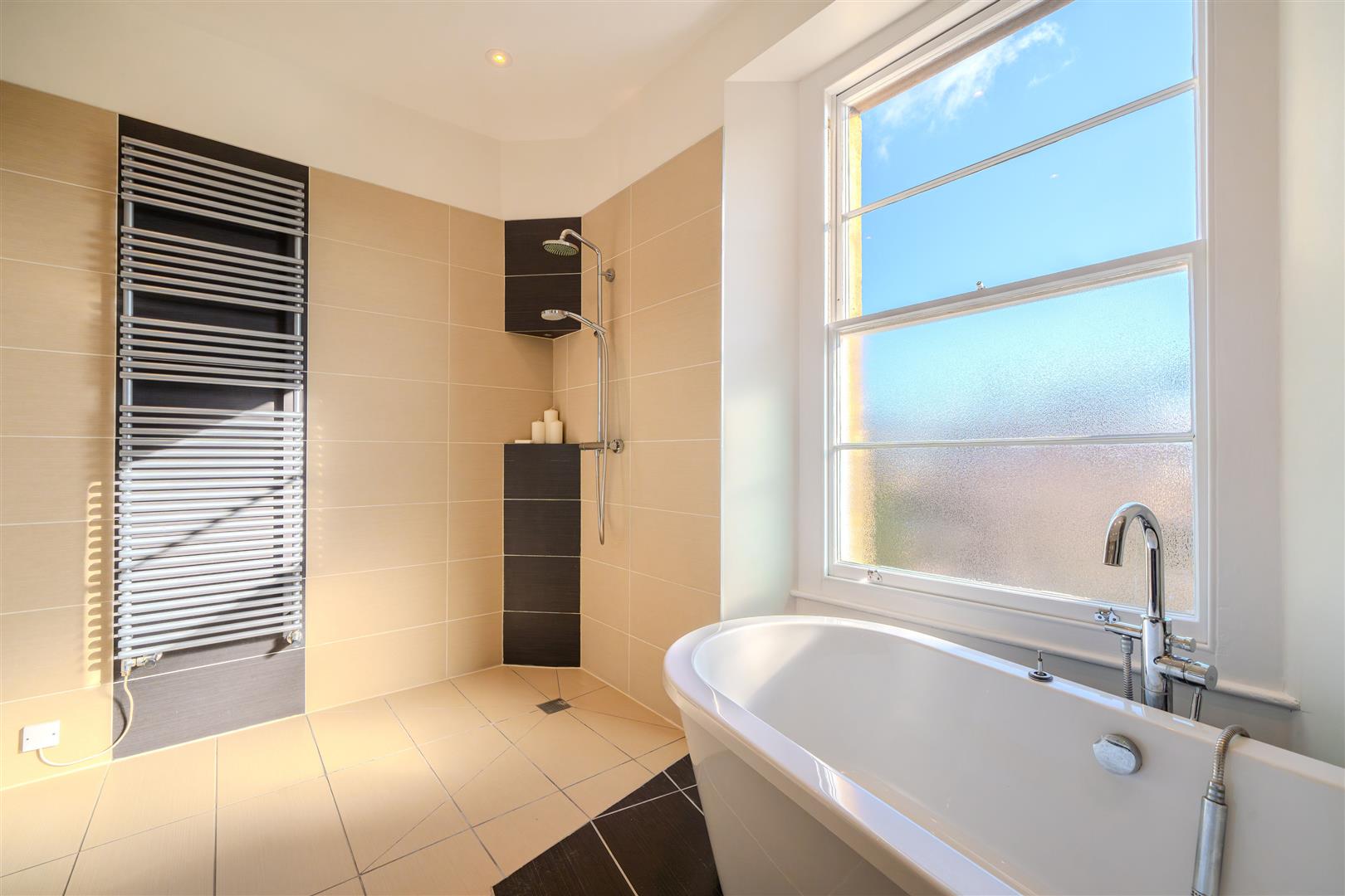 The upper or top floor of the maisonette provides a substantial landing which allows access to all of the accommodation on this level, as well as a hatch leading up to the loft. The principal bedroom is (as all the bedrooms are) very spacious and provides more than ample room for any bedroom furniture. It also benefits from a beautifully appointed shower room ensuite, which has been attractively tiled throughout and includes a large shower, WC, wash hand basin, under floor heating and a heated towel rail. There are three further, substantial, double bedrooms all of which similarly offer ample room, attractive views and plenty of light from double sash windows. There is a family bathroom, finished to a similar standard to the aforementioned ensuite, which provides a stand alone bath, open shower, WC, a wash hand basin, underfloor heating and a heated towel rail. Lastly there is a useful utility room which has both floor and wall mounted units providing plenty of storage and room to house a washing machine and a dryer. To the rear of the utility room is a large airing cupboard which contains the boiler and separate pressurised hot water cylinder.