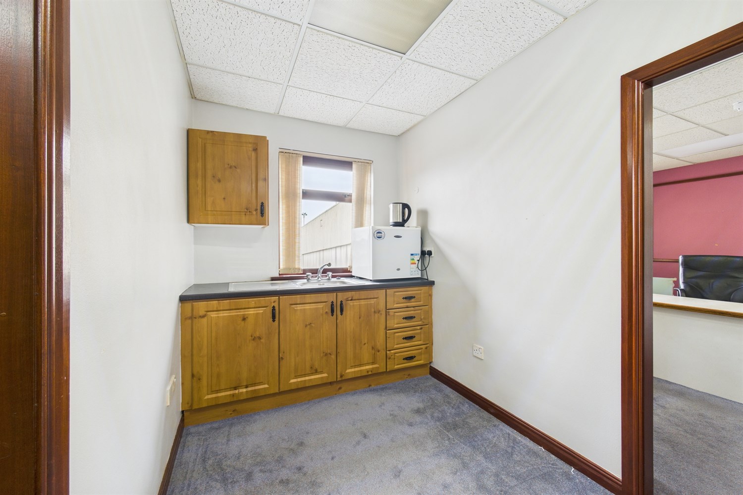 This well-presented premises occupies a prominent position on Main Street and benefits from a private car park to the rear, providing convenient off-street parking. The ground floor features a large reception area ideal for welcoming clients, alongside multiple private offices and a fully equipped kitchen, offering versatile workspace solutions to suit a variety of business needs.