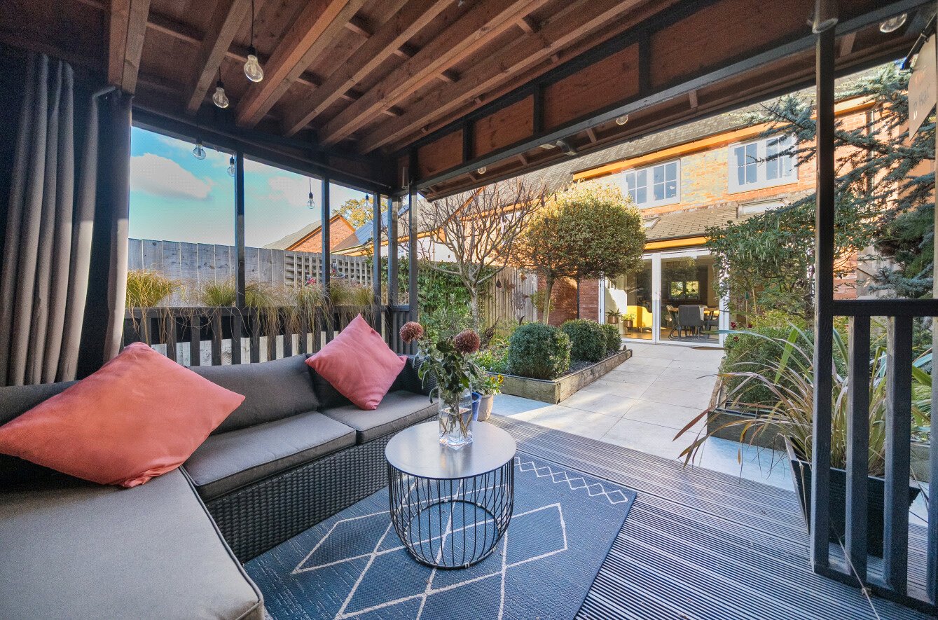 Outside, the rear garden has been landscaped with a variety of flowers and shrubs and there is a lovely summer house with sedum roof and power. A gate gives access to a single garage and there are two parking spaces.