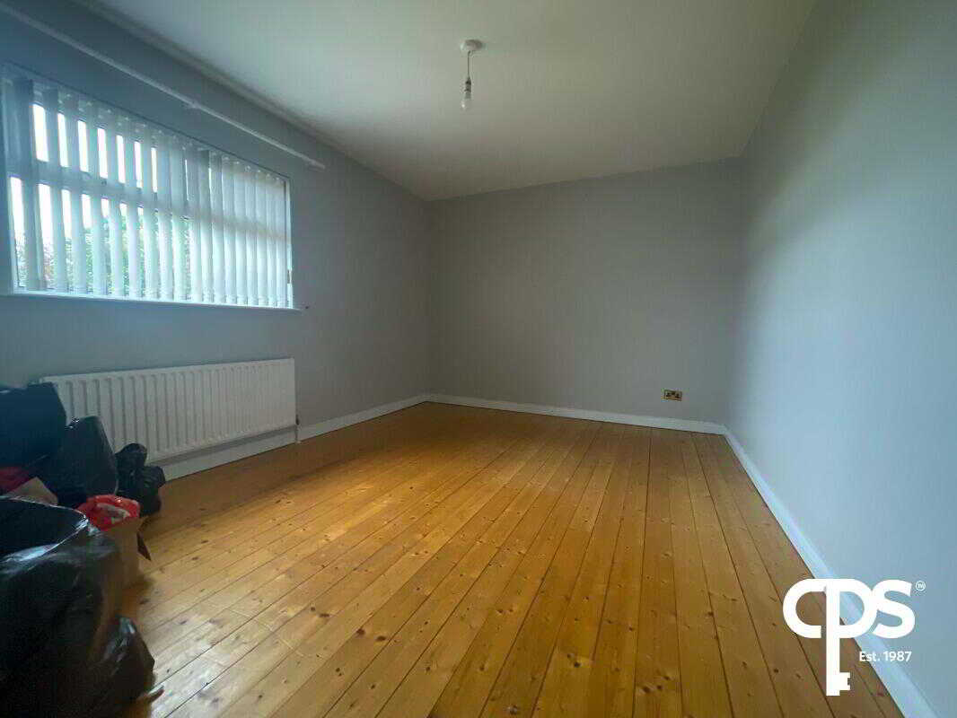 Spacious rear facing double bedroom with solid wooden flooring and double radiators.