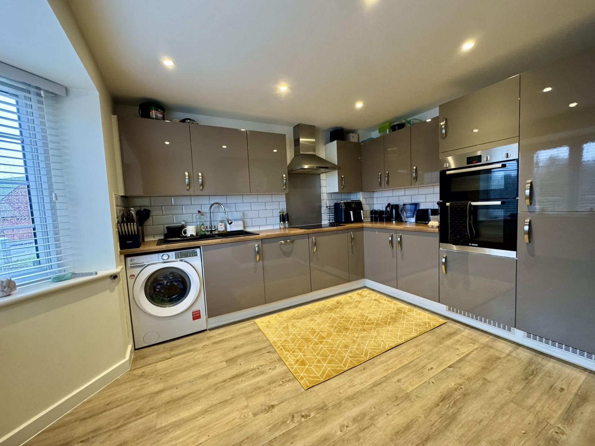 Fitted with a range of wall and base units, integrated fridge, freezer, dishwasher, electric hob with extractor fan over, oven and grill. Plumbing space for washing machine. uPVC bay window to the front elevation and spot lights.