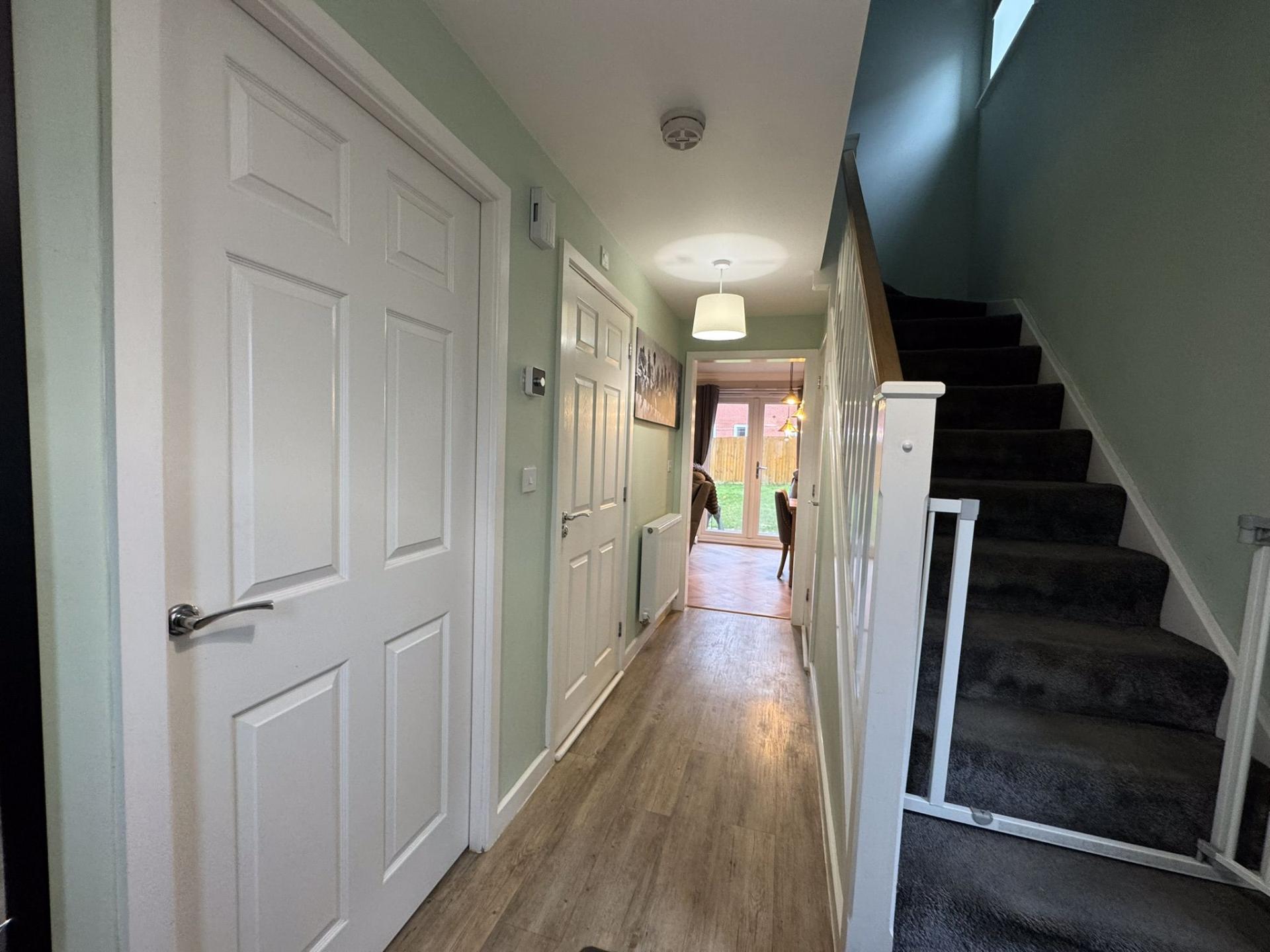 uPVC door to the front elevation, access to the first floor accommodation and a storage cupboard