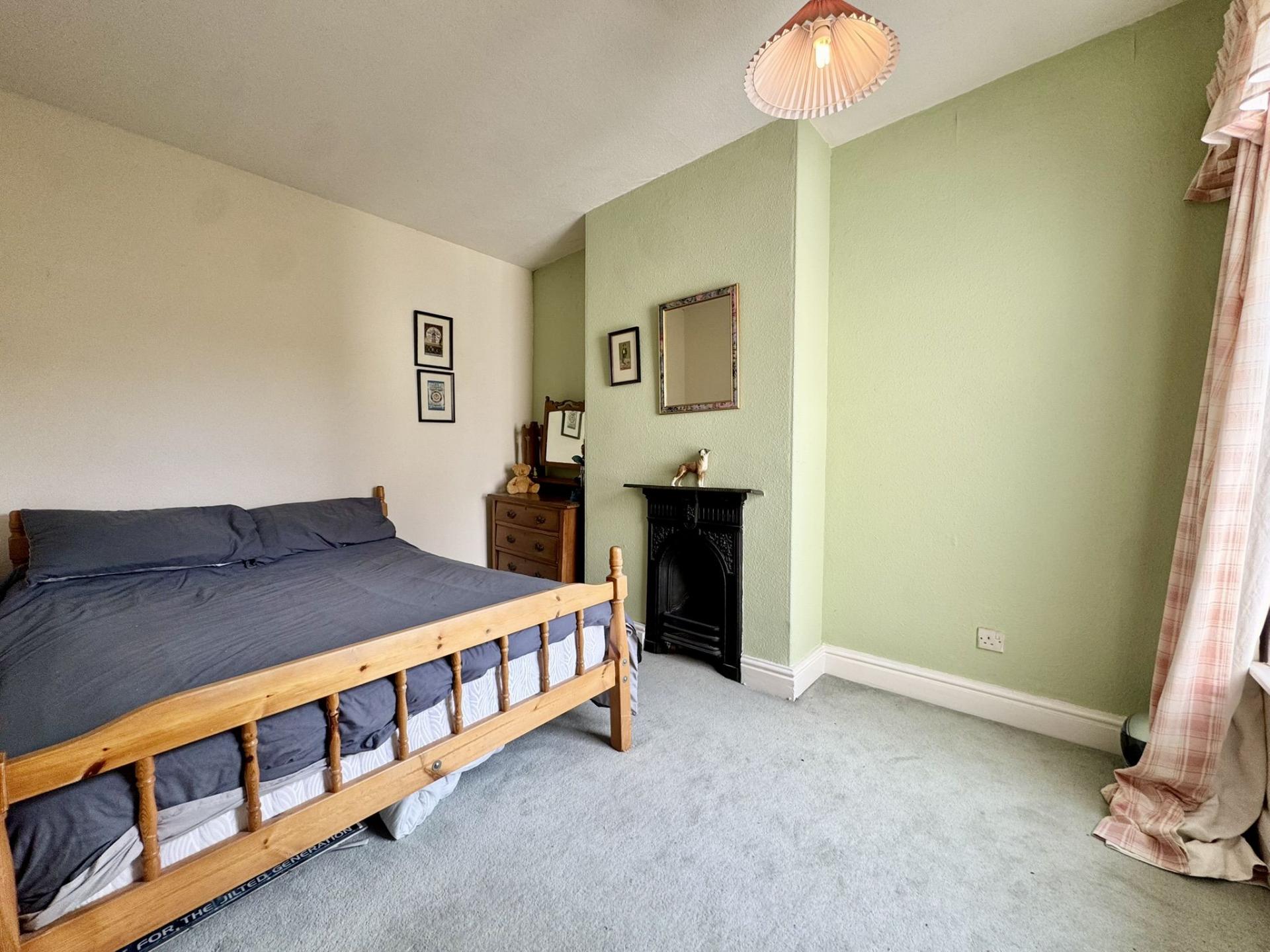 uPVC window to the front elevation, radiator and over stairs storage cupboard. The bedroom also benefits from a feature fireplace