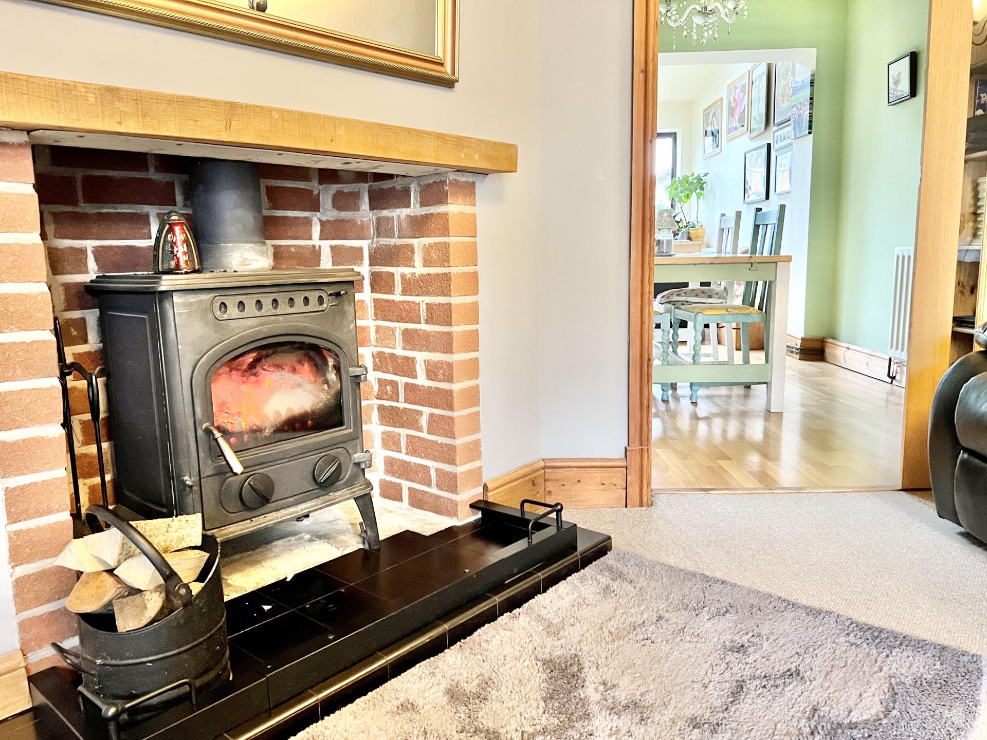 With a uPVC bay window to the front elevation, a column radiator, exposed brick fireplace with tiled hearth and multifuel burner.