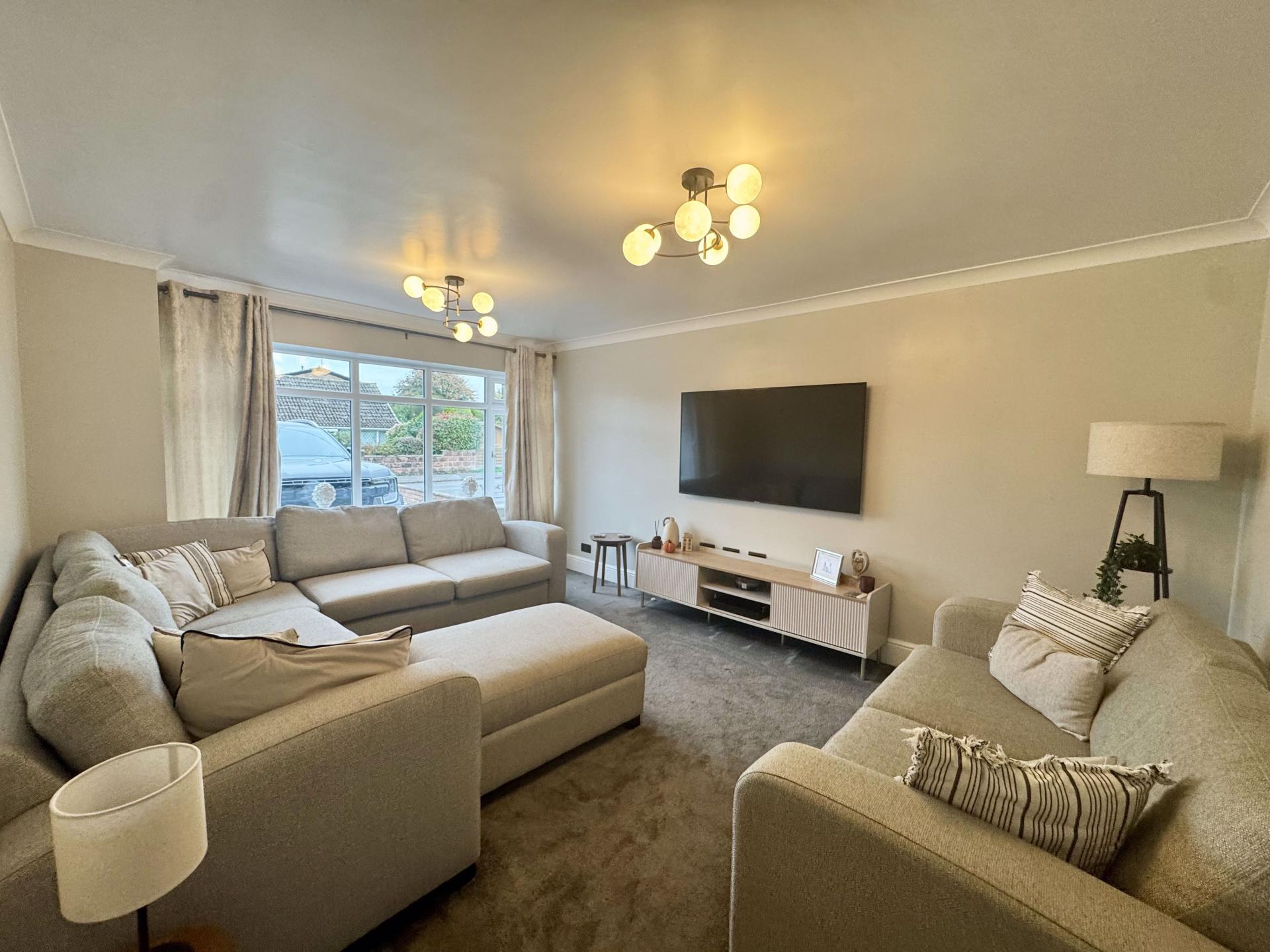 Extended living/kitchen/diner area fitted with a range of wall and base units, sink and drainer unit. Island with base units and worktop space. Breakfast bar, radiator. Integrated fridge, freezer and dishwasher. uPVC double doors and window to the rear elevation. Electric oven and grill with 4 ring electric hob and extractor fan over
