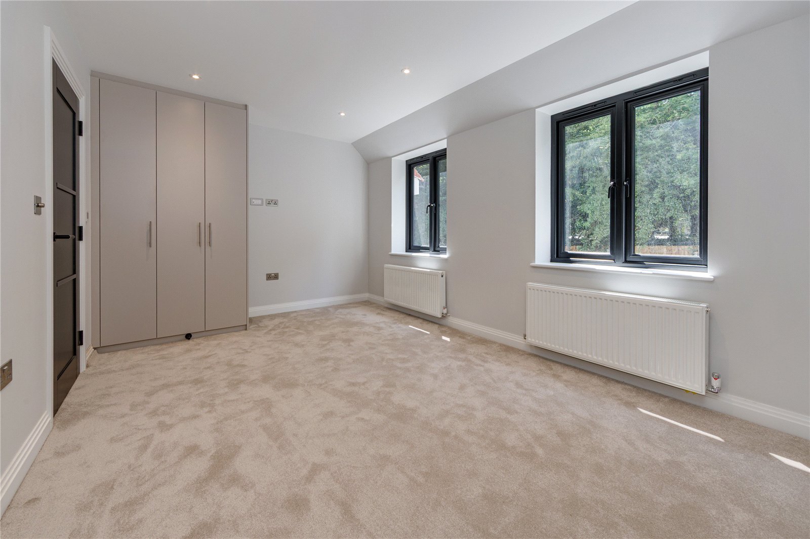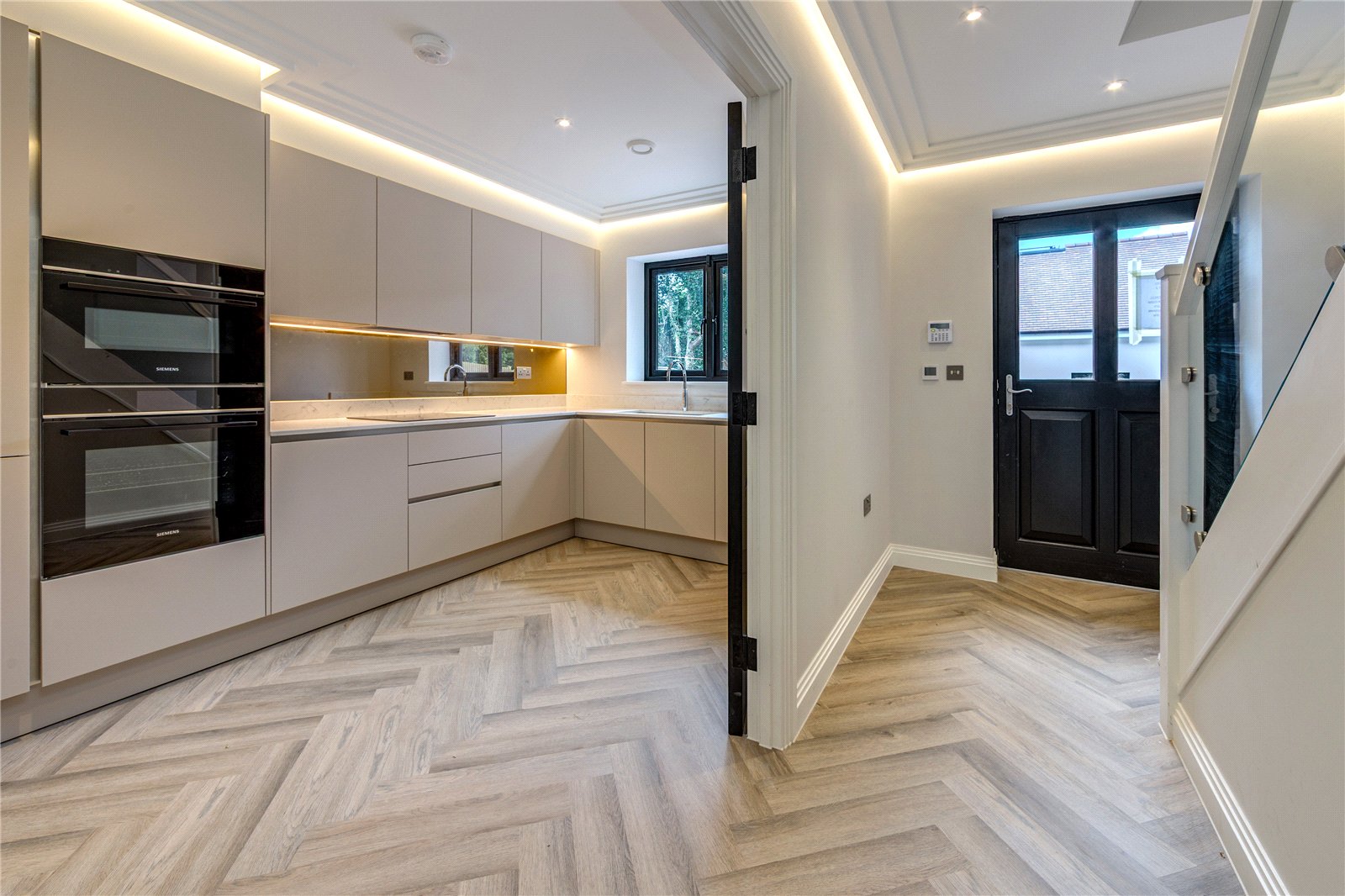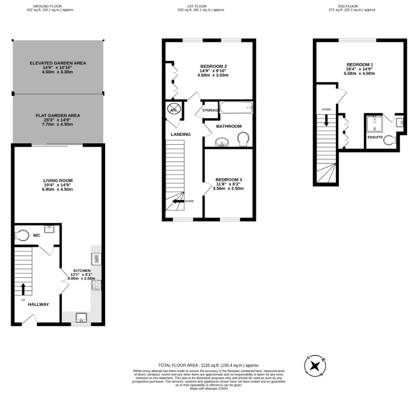 Welcome to Hooper Close, an exclusive new development nestled in a peaceful, leafy setting, offering a collection of contemporary homes designed for modern living. This beautifully finished three-bedroom home spans over 1,135 sq. ft. and is arranged across three thoughtfully planned floors.Upon entering the property, you are welcomed into a spacious hallway that leads directly into a stylish, fully fitted kitchen featuring sleek worktops and integrated appliances. The kitchen benefits from the added comfort of integrated air-conditioningperfect for those warmer months. A convenient WC is also located off the hallway for guest use. Toward the rear of the ground floor, the home opens into a large living room measuring an impressive 194 by 149, ideal for both entertaining and family time. This bright and airy space flows seamlessly out to the tiered rear garden, which includes both a flat and elevated garden area, offering flexibility for outdoor dining, relaxation, and play.The first floor hosts two generous double bedrooms. Bedroom two is located at the rear of the property and spans the width of the home, while bedroom three is also a good-sized double located at the front. This floor is served by a contemporary family bathroom, and there is also a useful storage cupboard off the landing.The entire top floor is dedicated to the principal bedrooma stunning and spacious suite featuring air-conditioning, a stylish en-suite shower room, and an abundance of natural light thanks to multiple skylight windows. This floor provides a tranquil retreat, perfect for unwinding at the end of the day.Externally, the property comes complete with allocated off-street parking and an electric vehicle charging point for added convenience and sustainability. Finished to a high specification throughout and set in an attractive, landscaped courtyard, this home at Hooper Close blends timeless design with future-ready features to offer the best of modern suburban living.