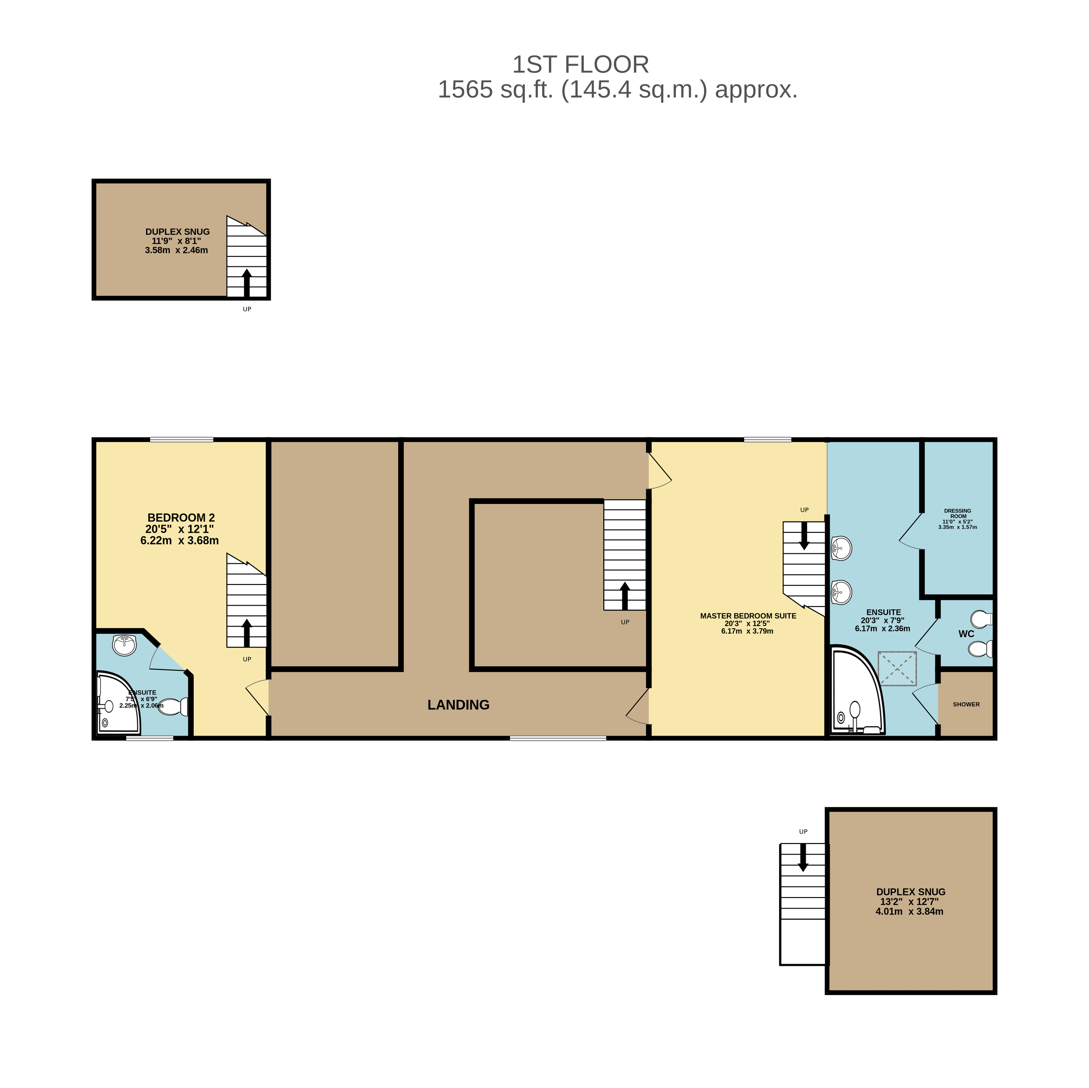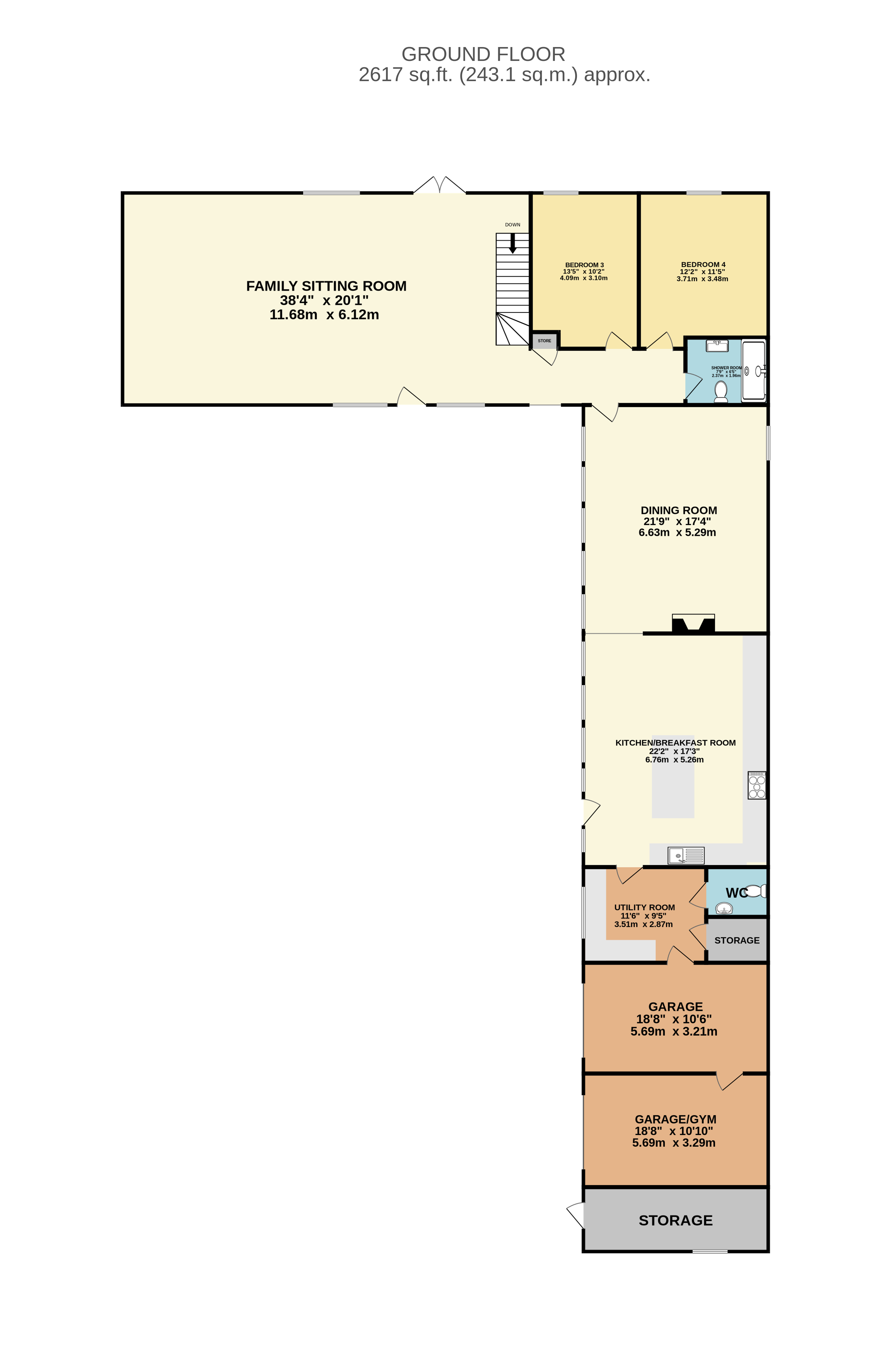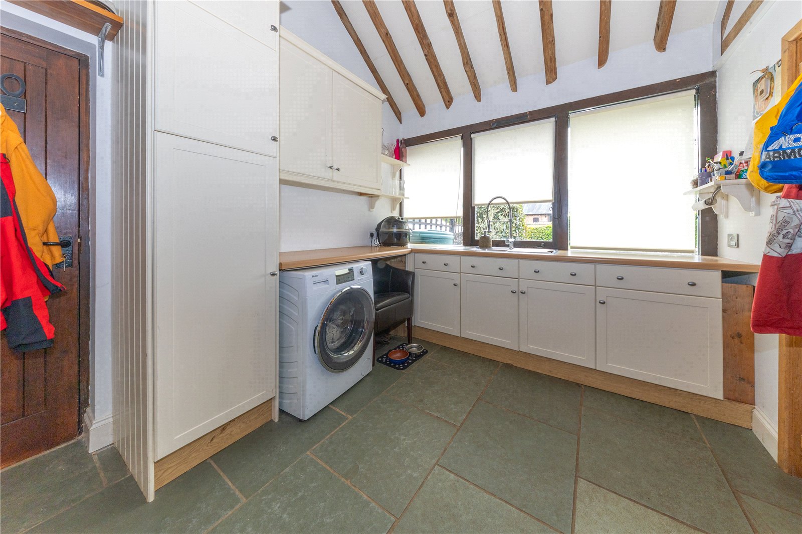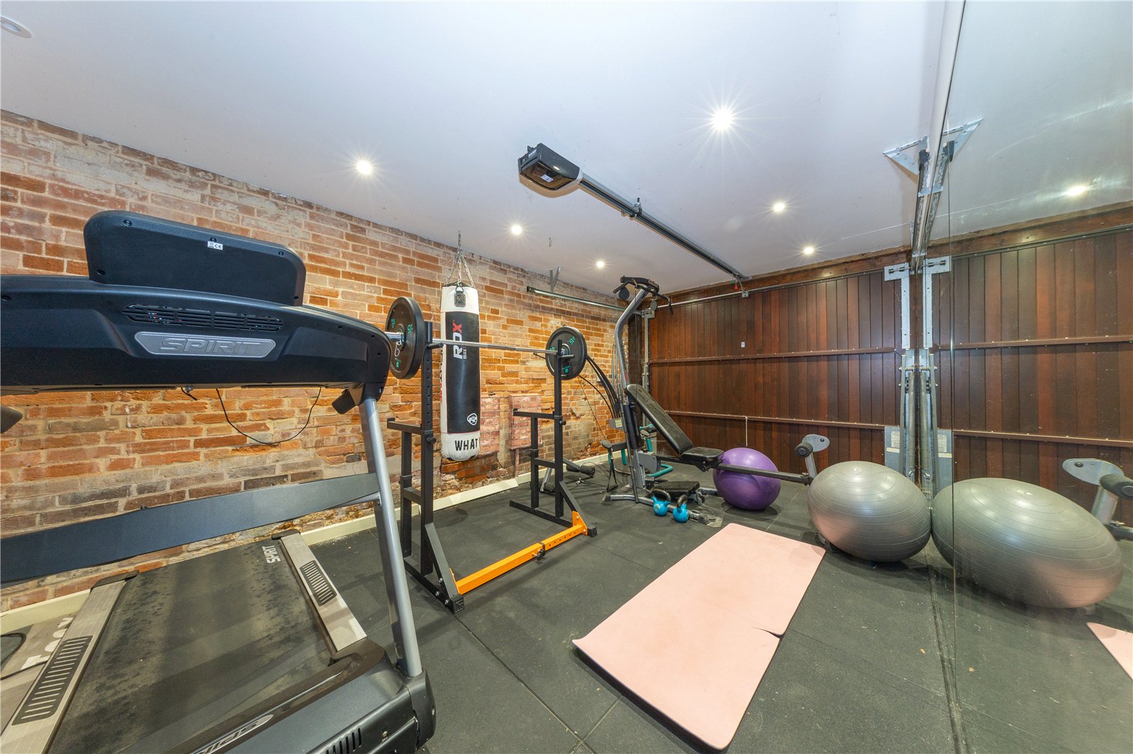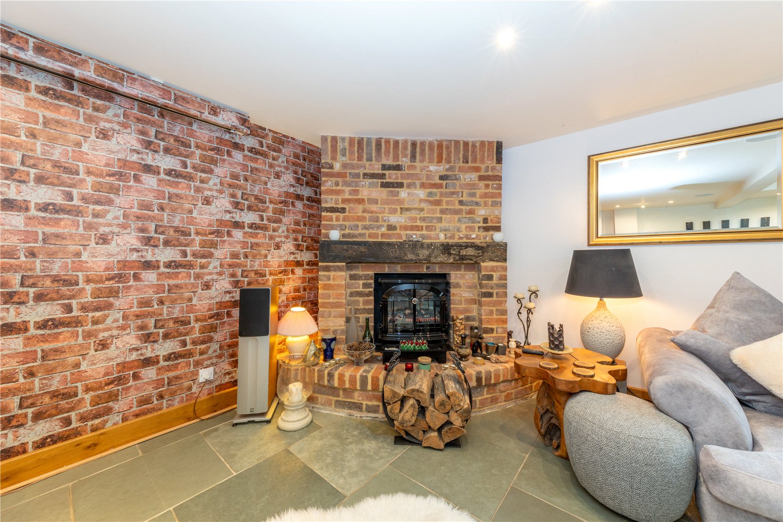 The property comprises a 38ft family sitting room with high vaulted ceilings and exposed beams together with a brick built fireplace and feature electric wood burner. There is also a 21ft dining room, 22ft kitchen/breakfast room, utility, downstairs WC and 2 garages, one of which has been converted to a gym. There is also a downstairs bathroom and 2 double bedrooms on the ground floor. Upstairs there are 2 further double bedrooms, both with en-suite bathrooms with the master bedroom having the addition of a dressing room and separate shower and corner bath. Also, each bedroom has stairs to a duplex snug which are ideal for extra space, study area or storage rooms. Externally there is a gated entrance with shingle driveway for several cars, front and back gardens mostly laid to lawn with established shrubs and a pond to the rear.