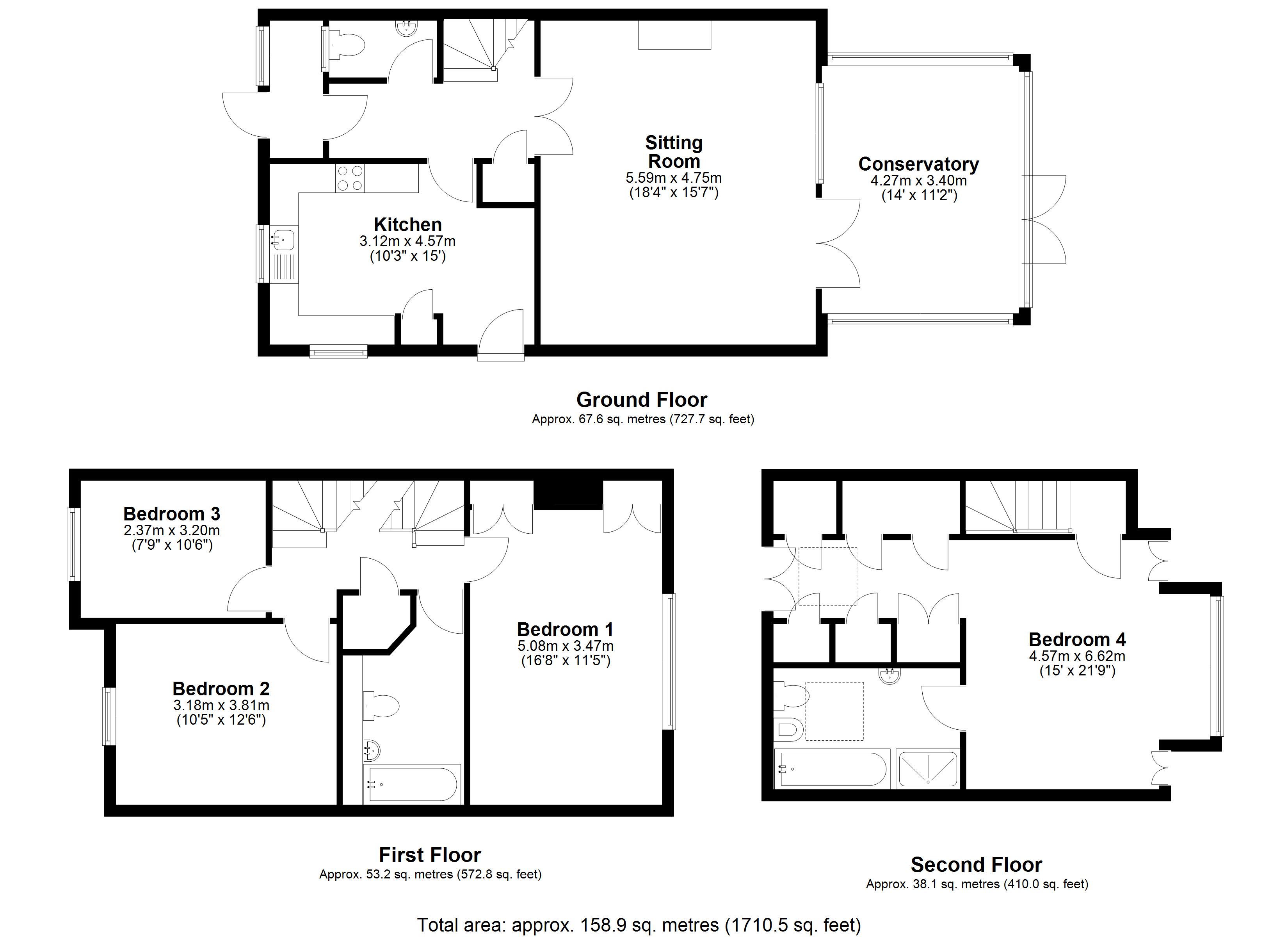 Moving upstairs to the first floor, the property continues to impress with three bedrooms and a family bathroom. The second floor boasts a unique large principal bedroom with an ensuite including a bath and separate standing shower and dressing area with build in wardrobes. The top floor also boasts views through the Velux windows of the Wylye Valley and the adjacent countryside.