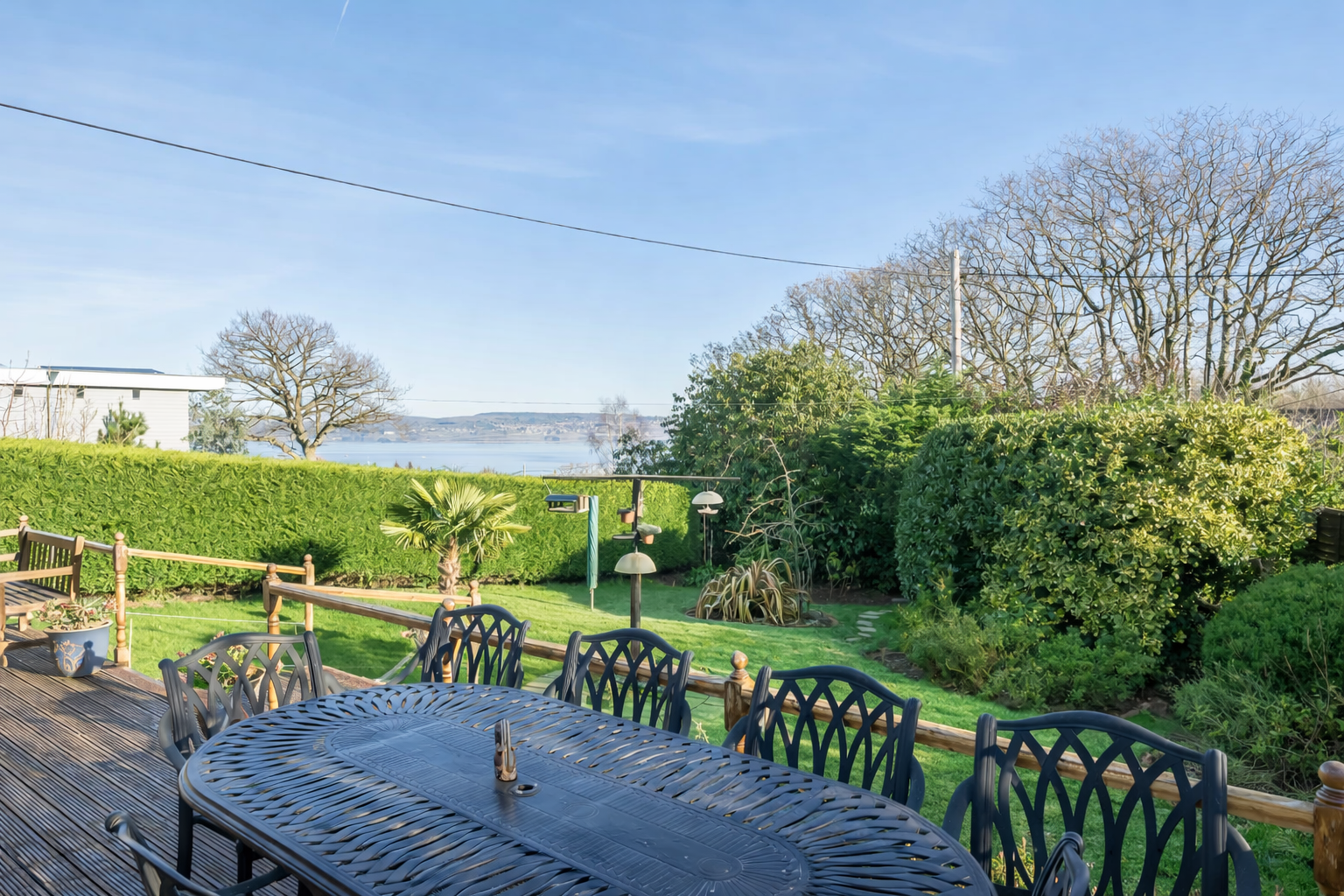 Outside: The property is set within a beautifully secluded and enclosed rear garden, predominantly laid to lawn and bordered by well-stocked flower and shrub beds which provide colour and seasonal interest throughout the year.A superb wraparound timber deck creates an ideal space for outdoor dining and entertaining, perfectly positioned to enjoy the far-reaching estuary views. Tucked away within the garden is a secluded hot tub, offering a peaceful setting for relaxation.The gardens are complemented by a number of useful timber sheds and outbuildings providing excellent storage. To the side of the property is a further outbuilding, while to the front there is a detached garage with an adjoining workshop, power and lighting, together with useful eaves storage.On the southern side of the property there is an additional garden area with log storage and a further shed, which also benefits from driveway access.