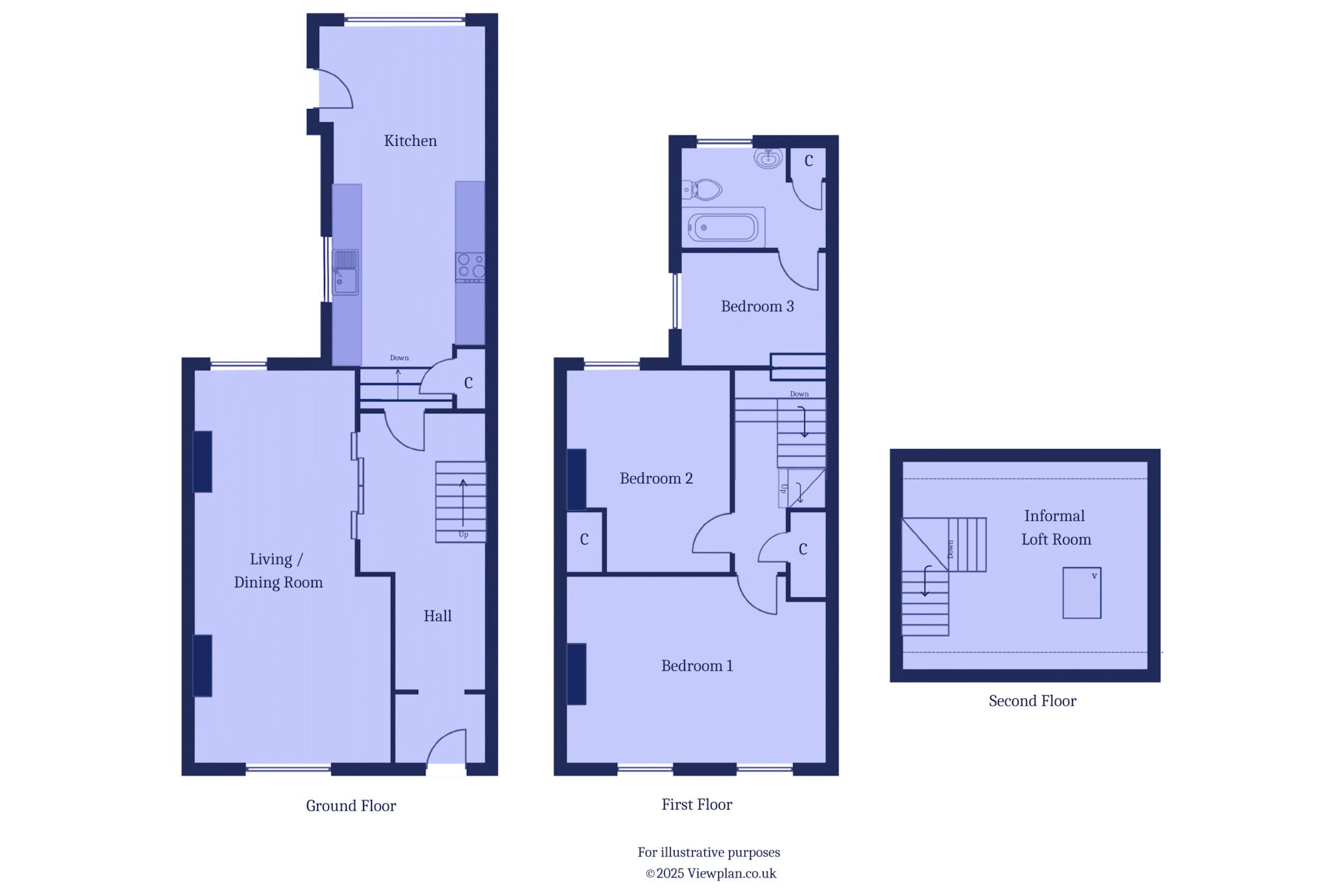 - Three bedrooms