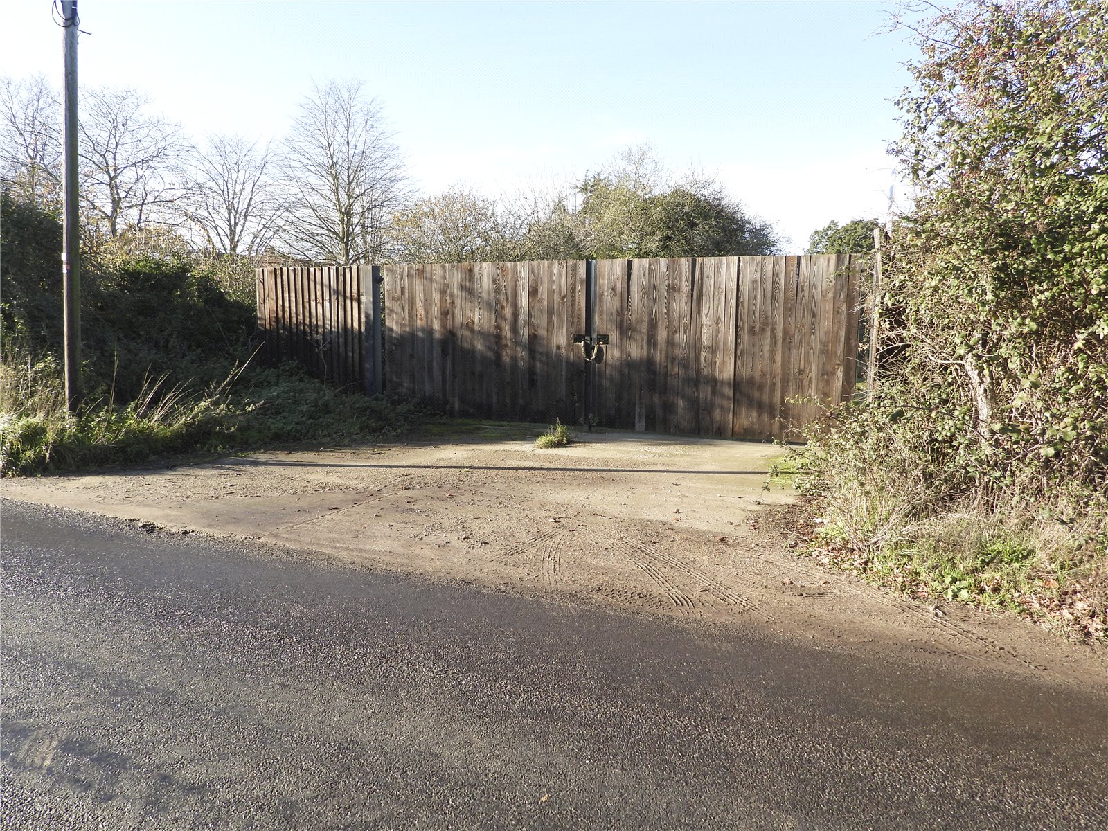 and provides a generous, largely level expanse with mature natural surroundings. The land also benefits from vehicular access via Coggeshall Road, through a substantial gated entrance with steel gates and wooden cladding. Within the site, there is a hard-standing area inside the entrance and an 80-metre hardcore track running along the southern boundary, offering excellent internal access.